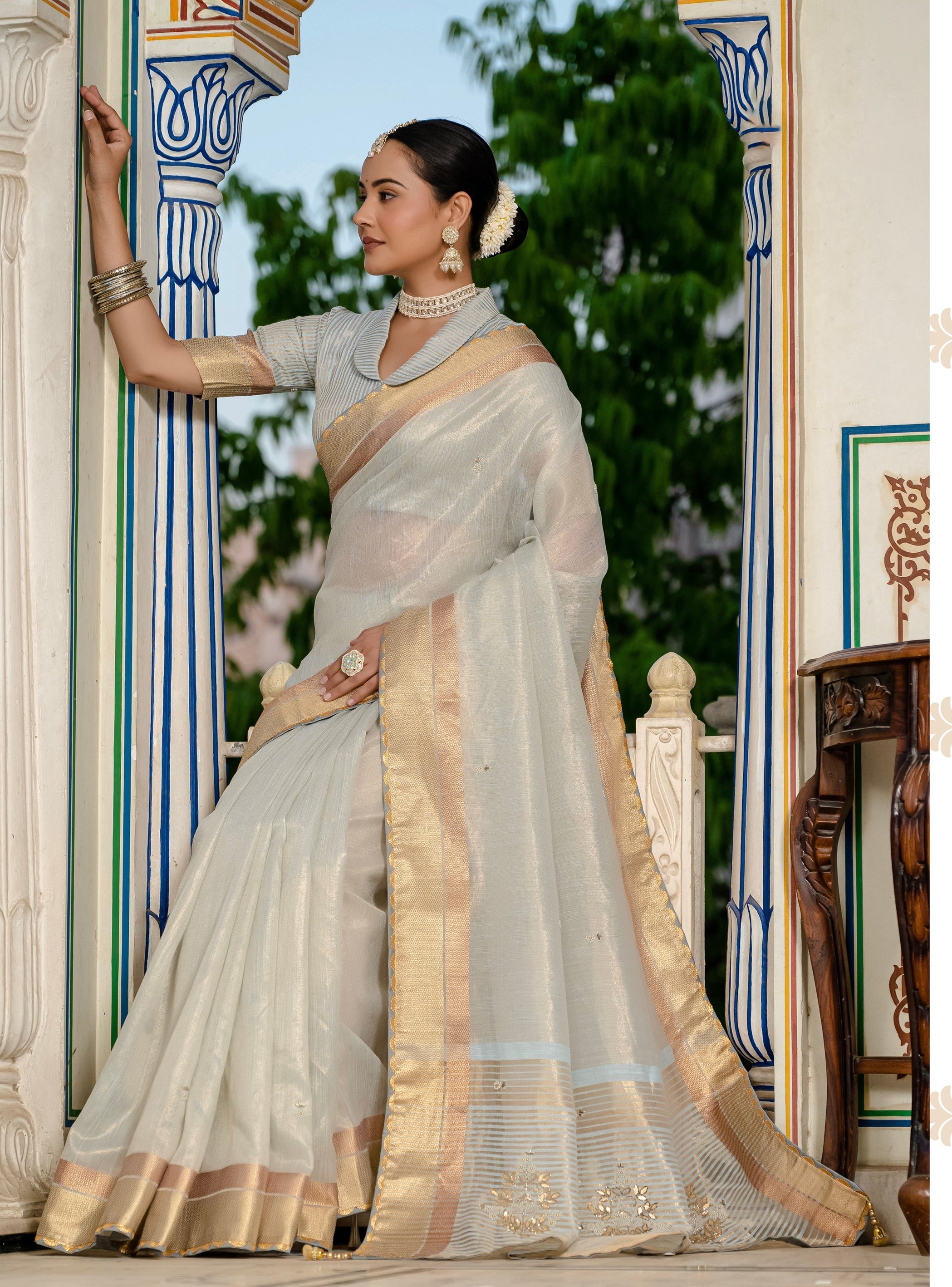 Saree Fabric : Tissue Linen || Blouse Fabric : Tissue Linen