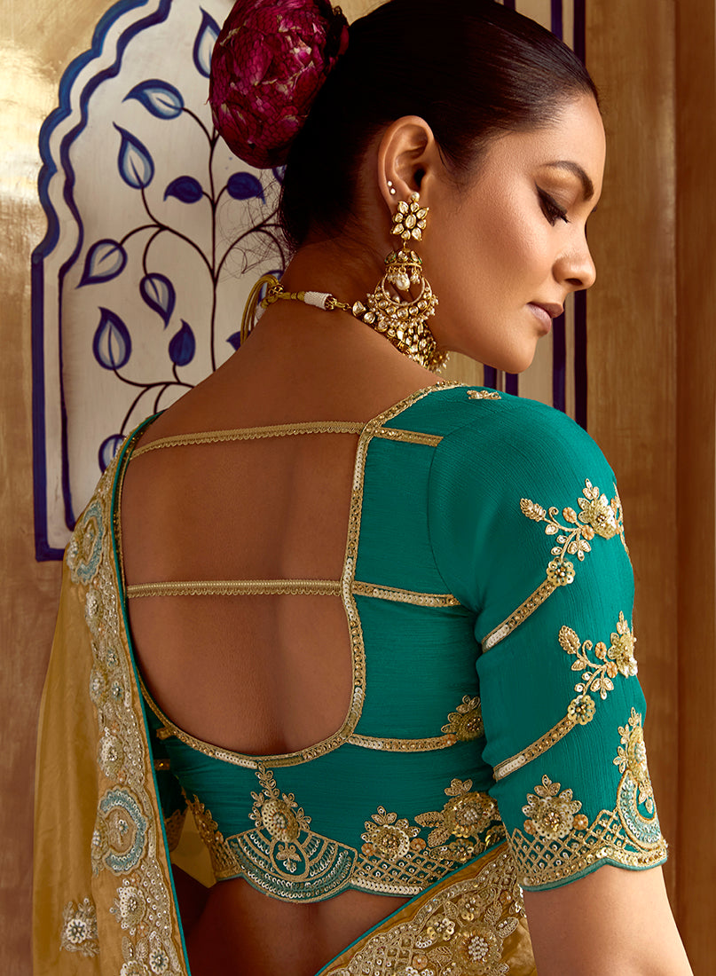 Saree Colour : Light Mustard || Blouse Colour : Turquoise