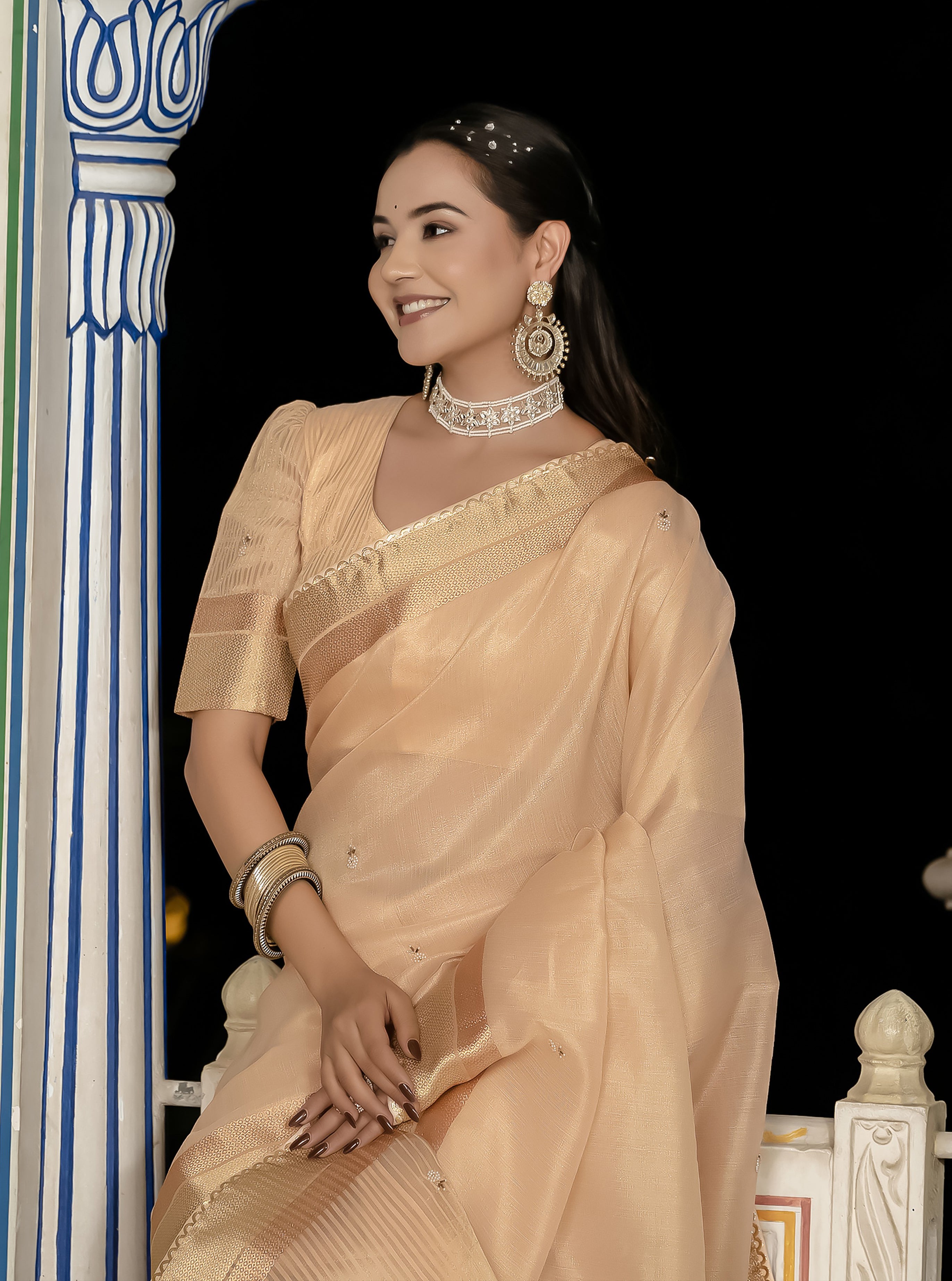 Saree Colour : Light Peach || Blouse Colour :-Light Peach
