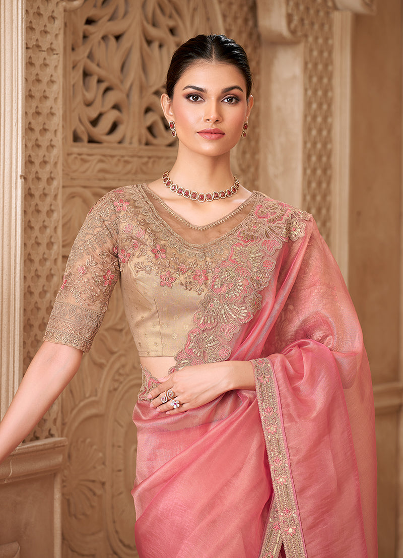 Saree Colour : Light Pink | Blouse Colour : Gold