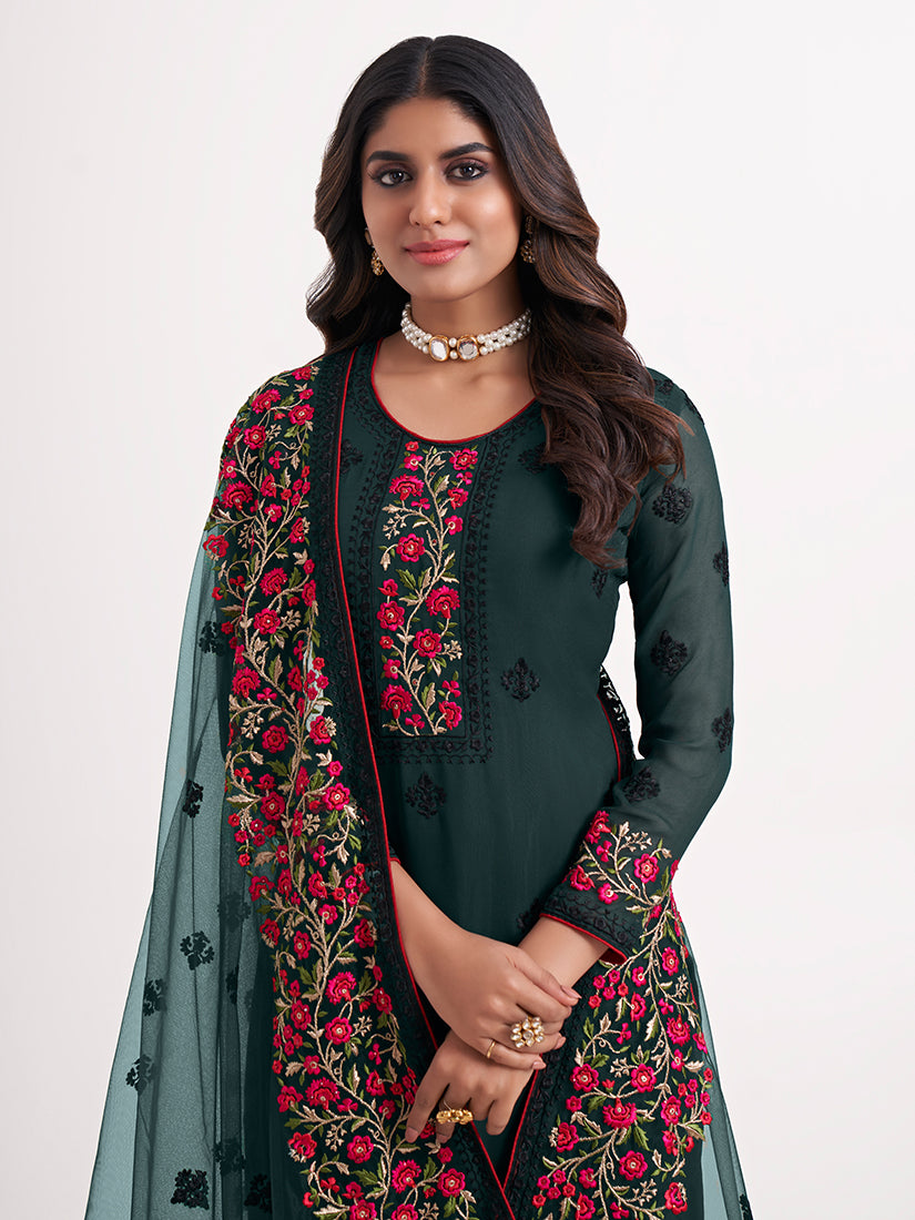 Colour : Top :- Teal Green || Bottom :-Teal Green || Dupatta :- Teal Green