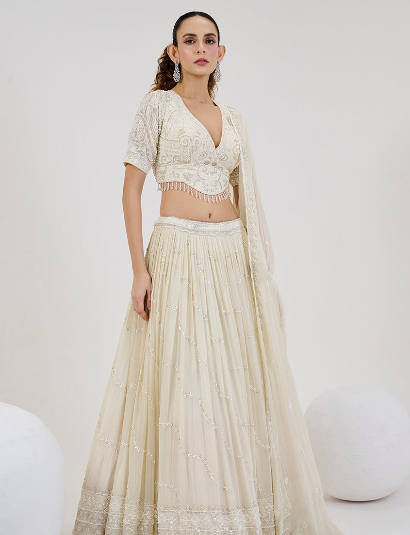 Colour : Lehenga :- Off White || Blouse :- Off White || Dupatta :- Off White