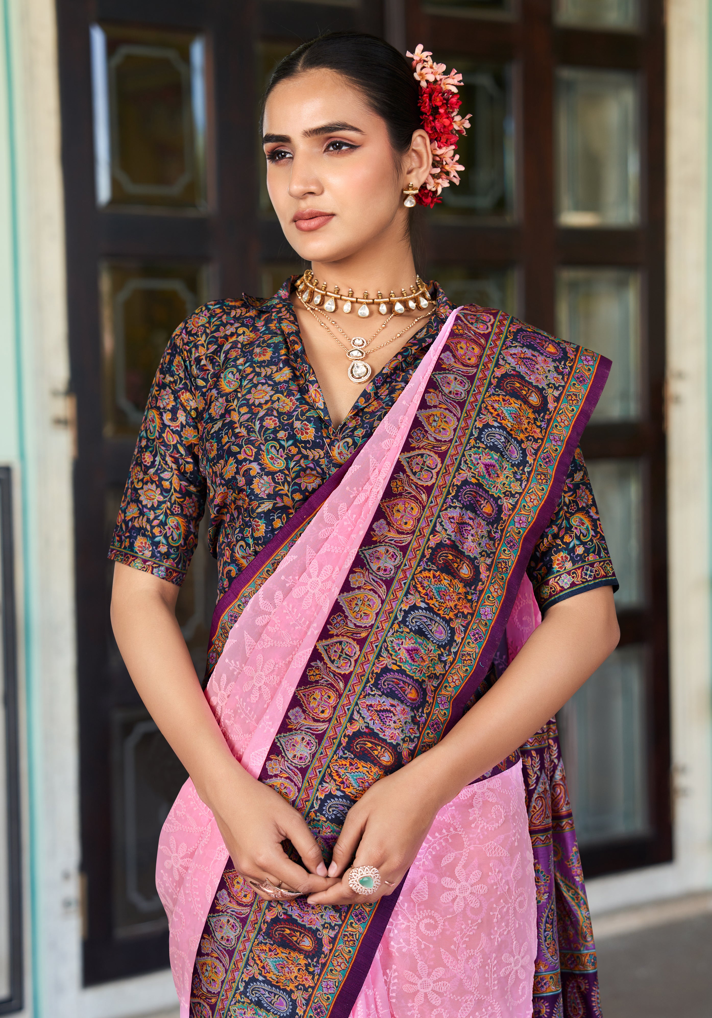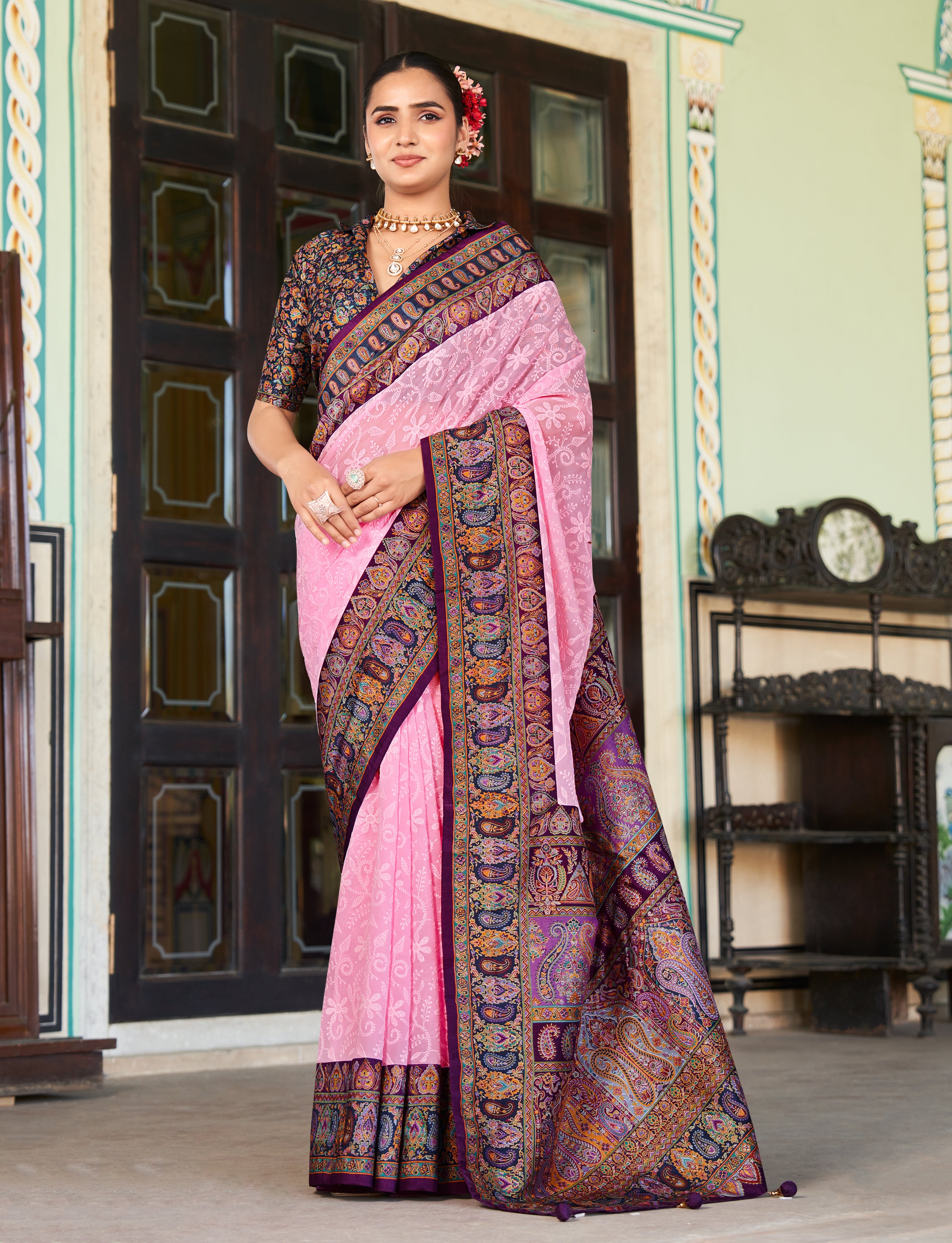 Saree Fabric : Georgette || Blouse Fabric :Pashmina