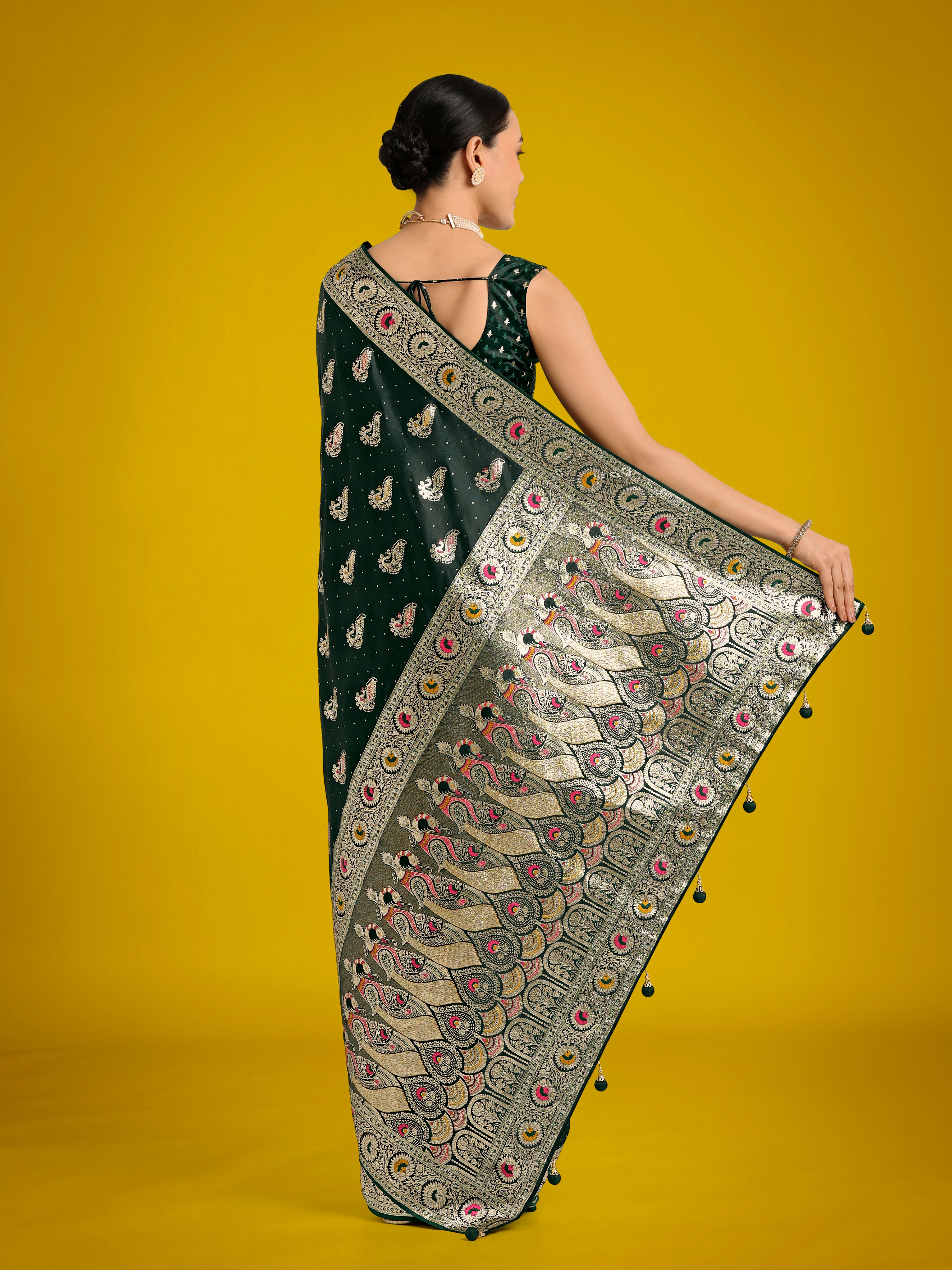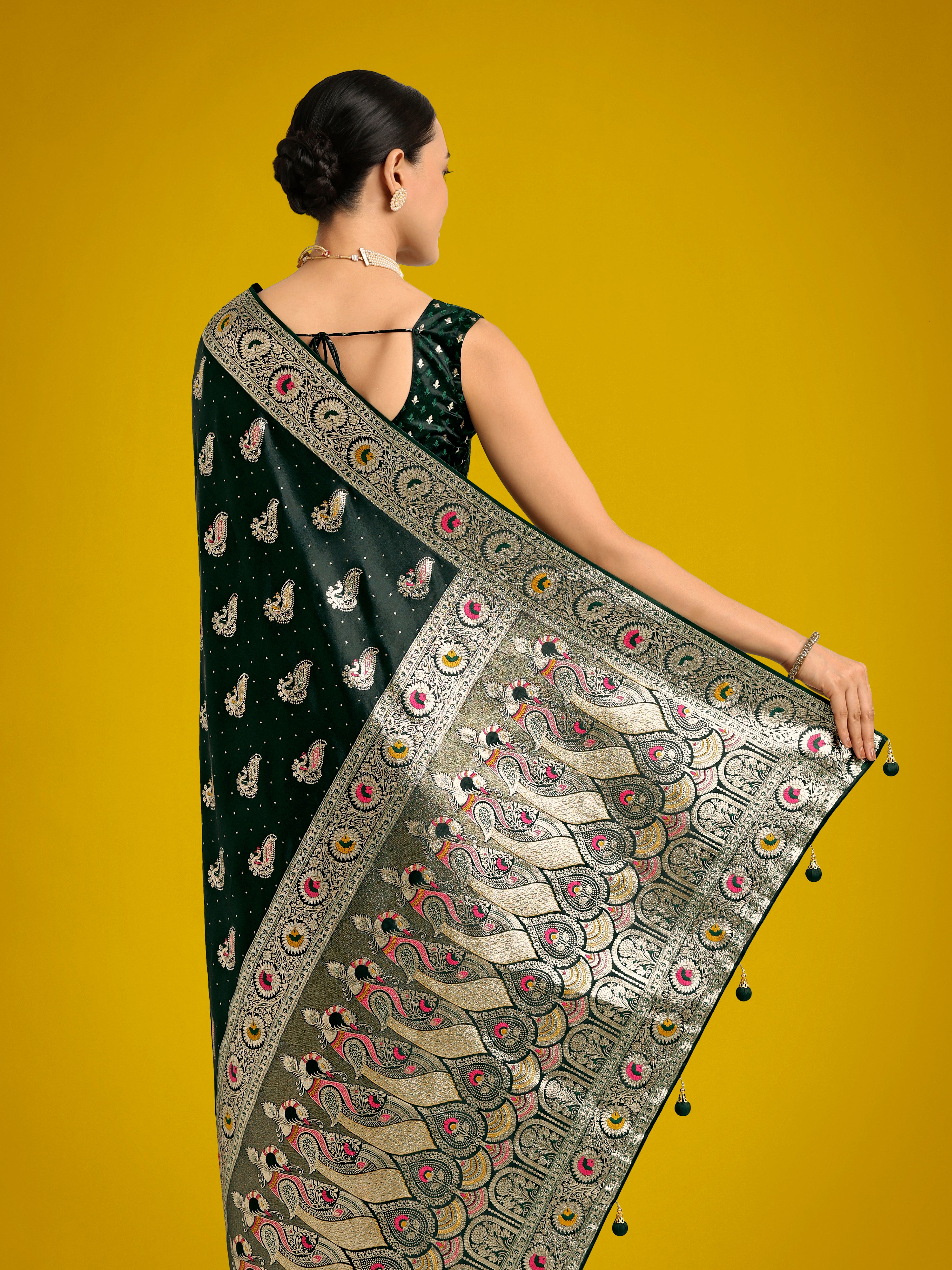 Saree Colour : Dark Green|| Blouse Colour : Dark Green