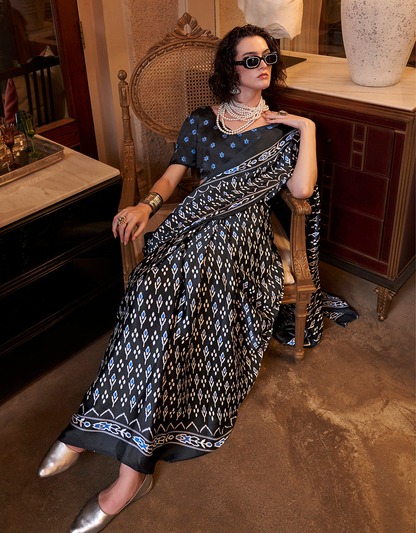 Monjolika Fashion presents bring tradition into your daily wardrobe with this satin saree featuring all-over traditional motifs. Lightweight and elegant, it’s ideal for office wear, casual lunches, or quick festive gatherings.