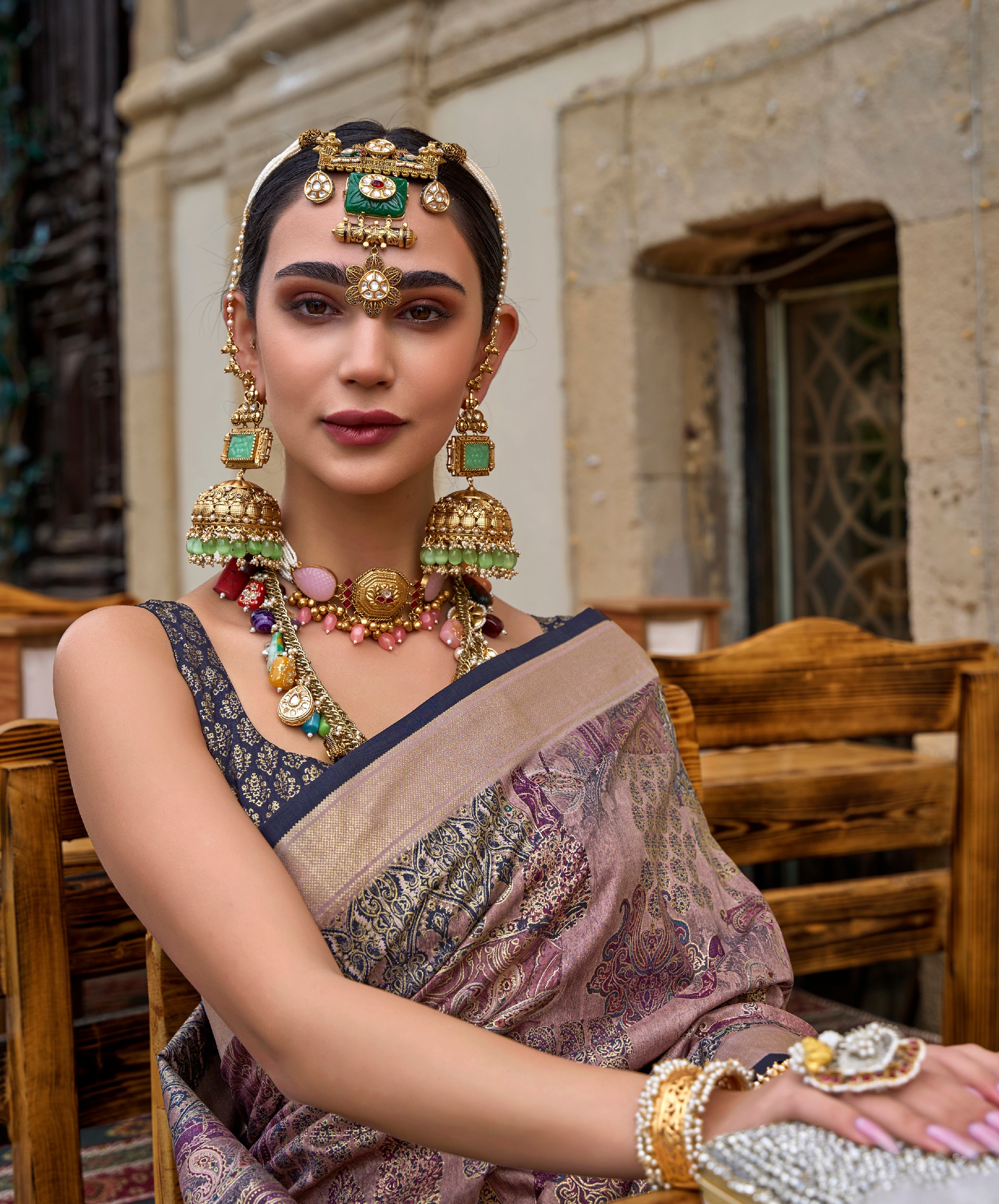 Saree Colour : Mauve || Blouse Colour : Navy Blue