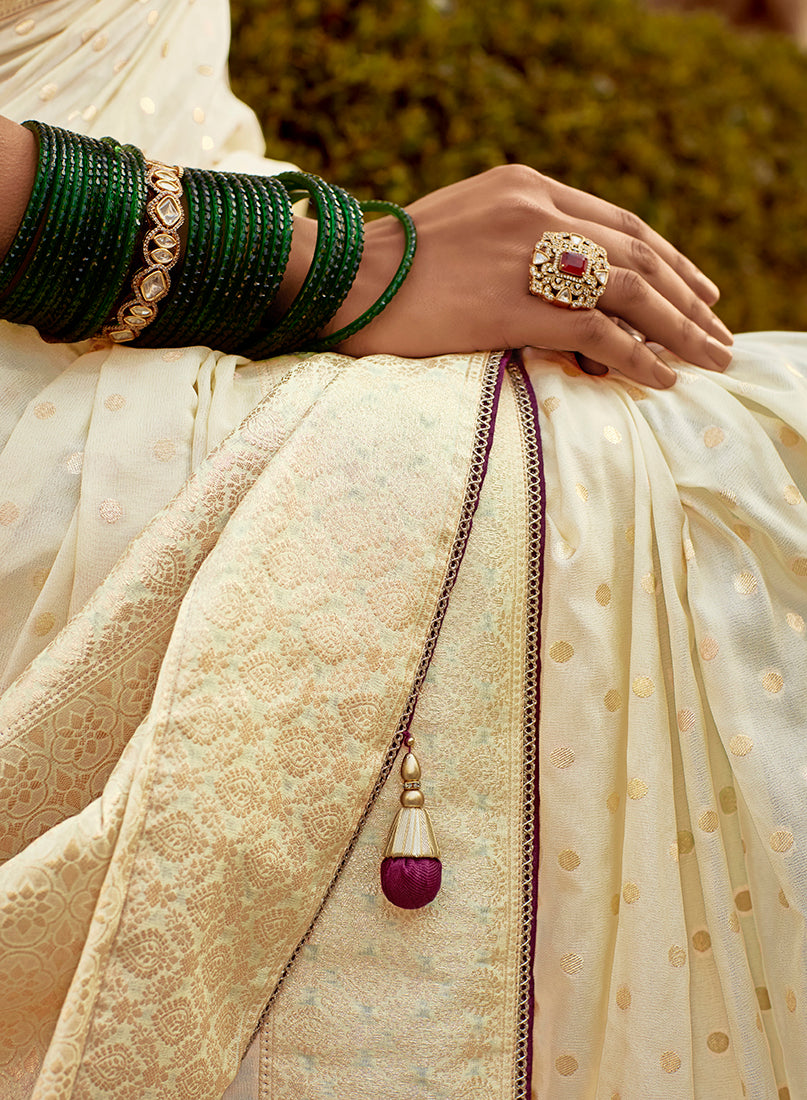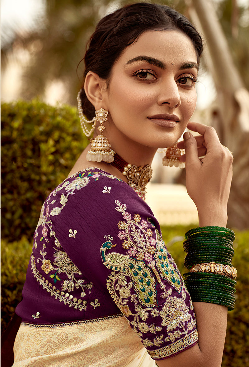 Saree Colour : Cream  || Blouse Colour : Dark Purple