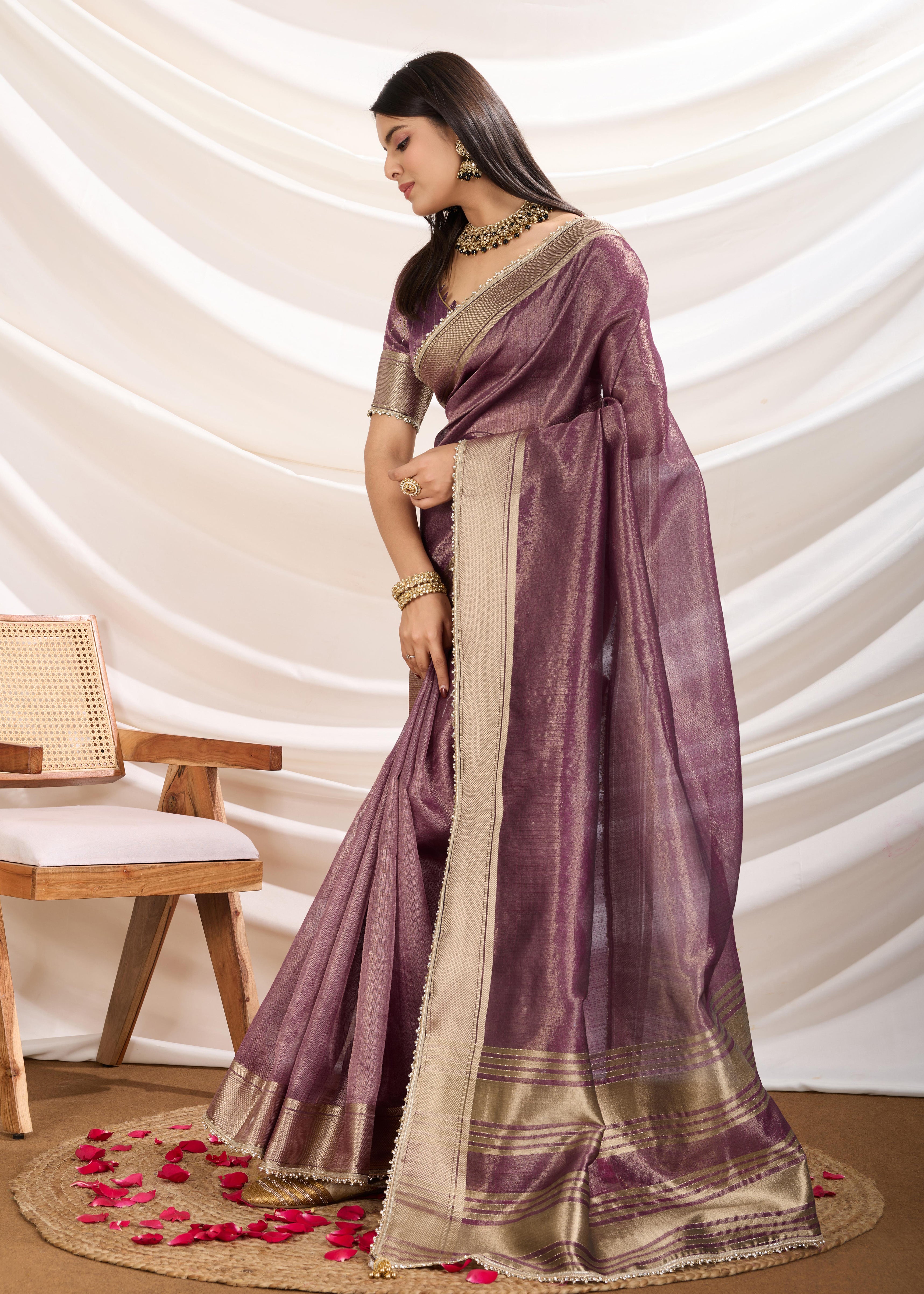 Vogue and pattern will be on the peak of your magnificence as soon as you attire this Light blue tissue classic saree. The ethnic border,Woven patta palu nd brocade and work to your clothing adds a sign of magnificence statement with your look. Comes with matching blouse. (Slight variation in color, fabric & work is possible. Model images are only representative.)