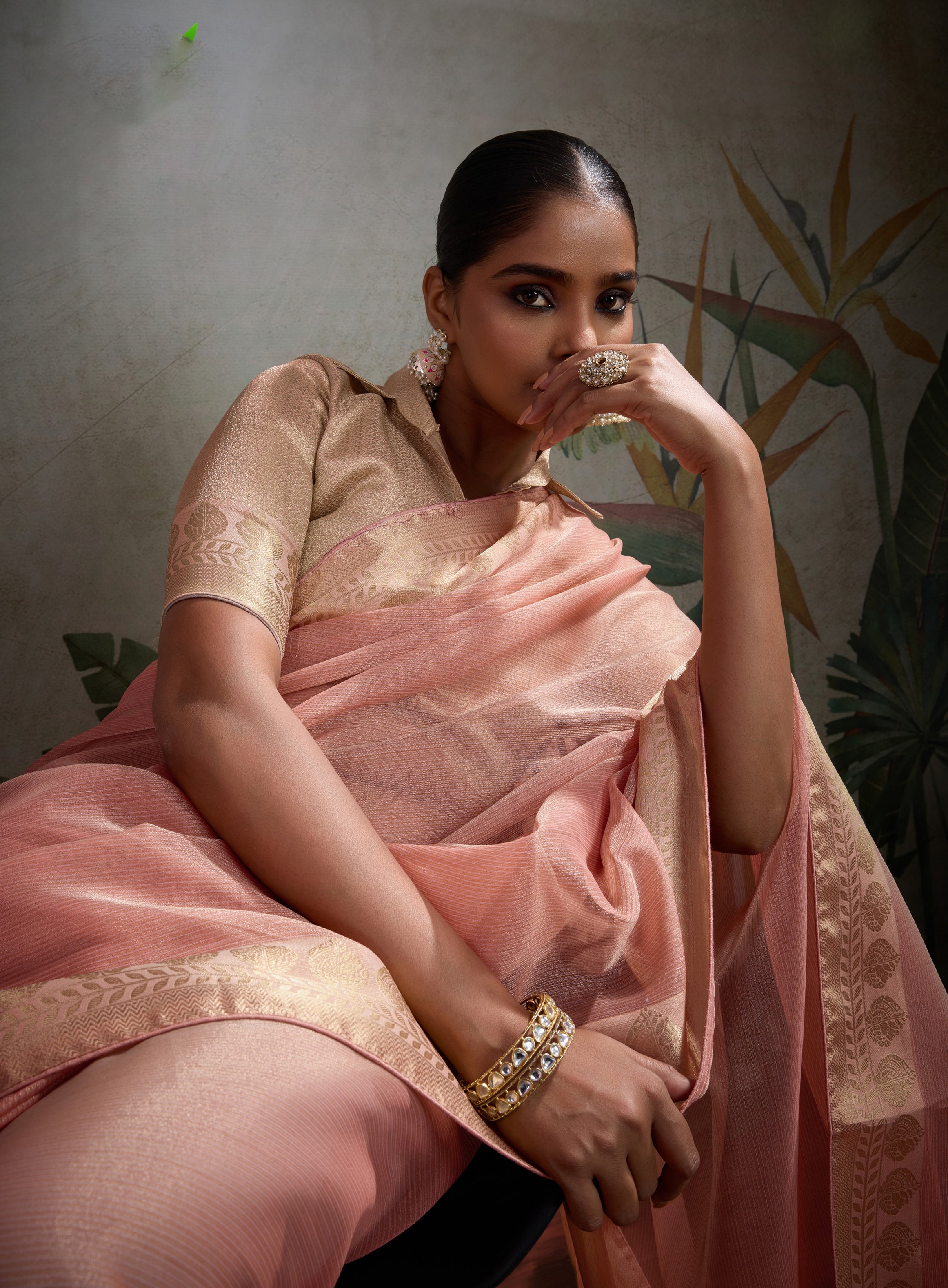 Saree Colour : Light Peach|| Blouse Colour :-Light Peach