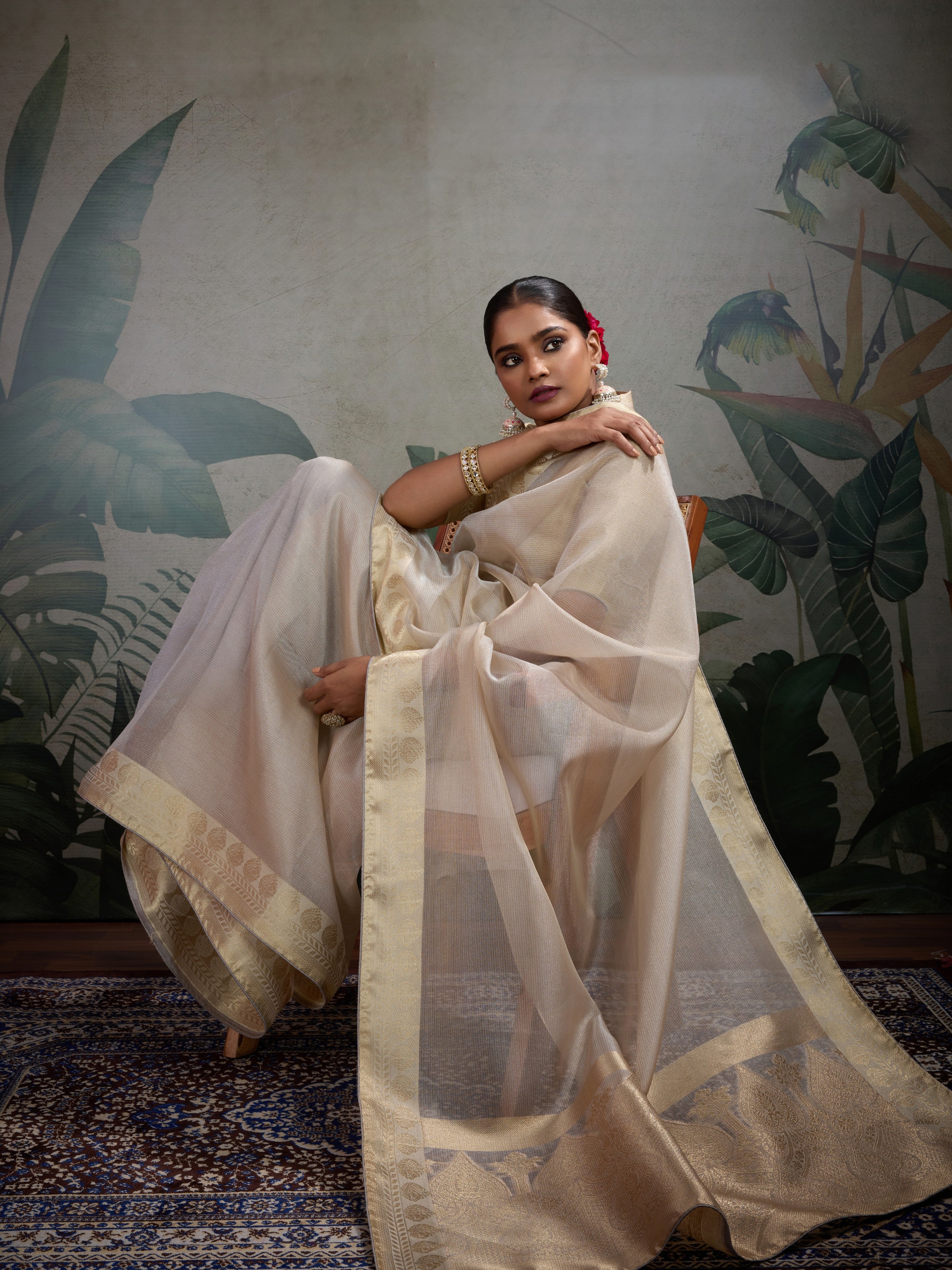 Saree Fabric : Soft Tissue Silk || Blouse Fabric : Brocade