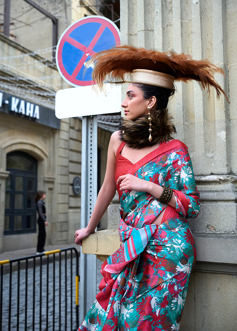 Monjolika Fashion presents a showcase of your bold side with this satin silk saree featuring abstract and artistic prints. The smooth satin finish paired with vivid colors creates a standout look for cocktail evenings, office events, or creative get-togethers.