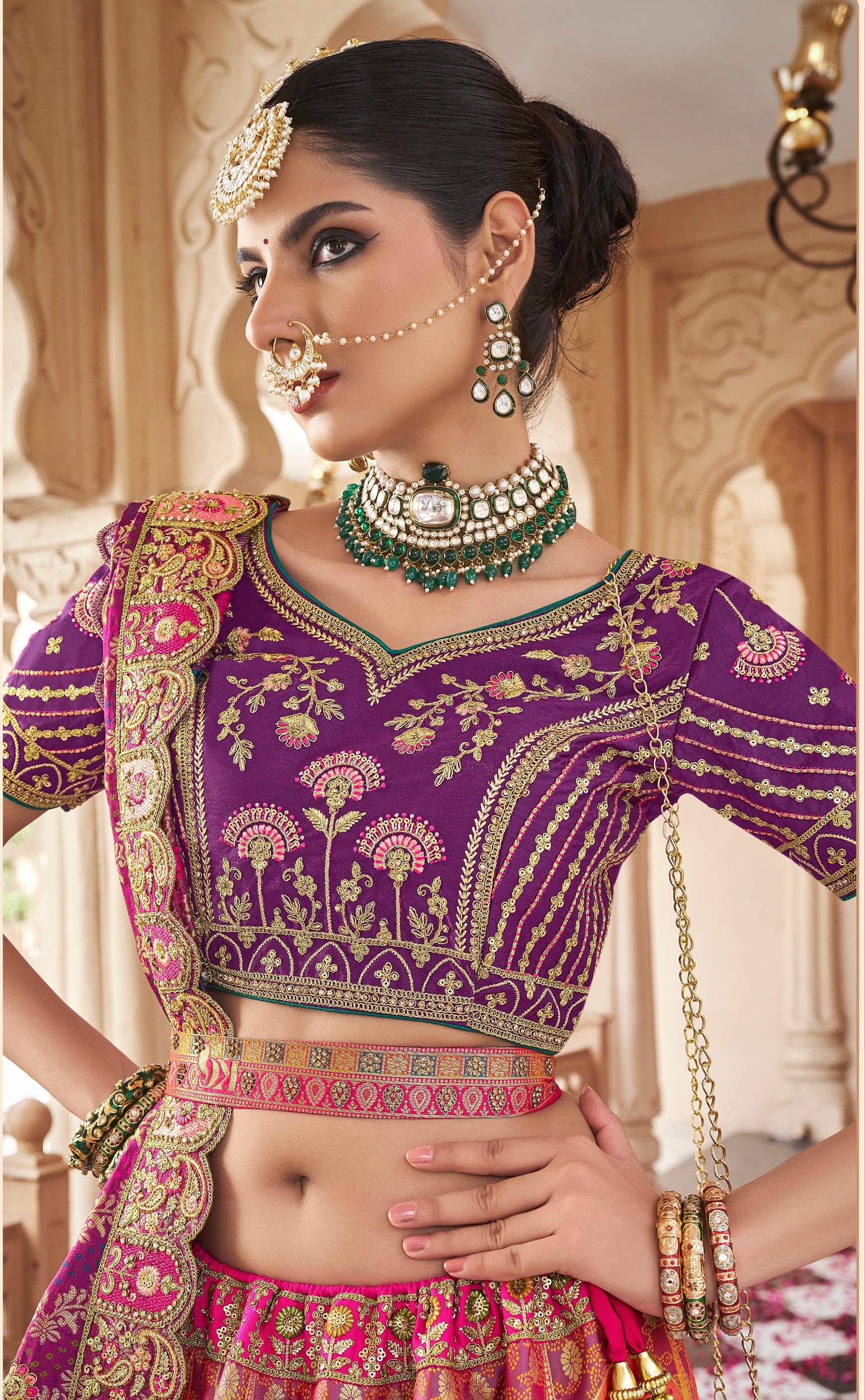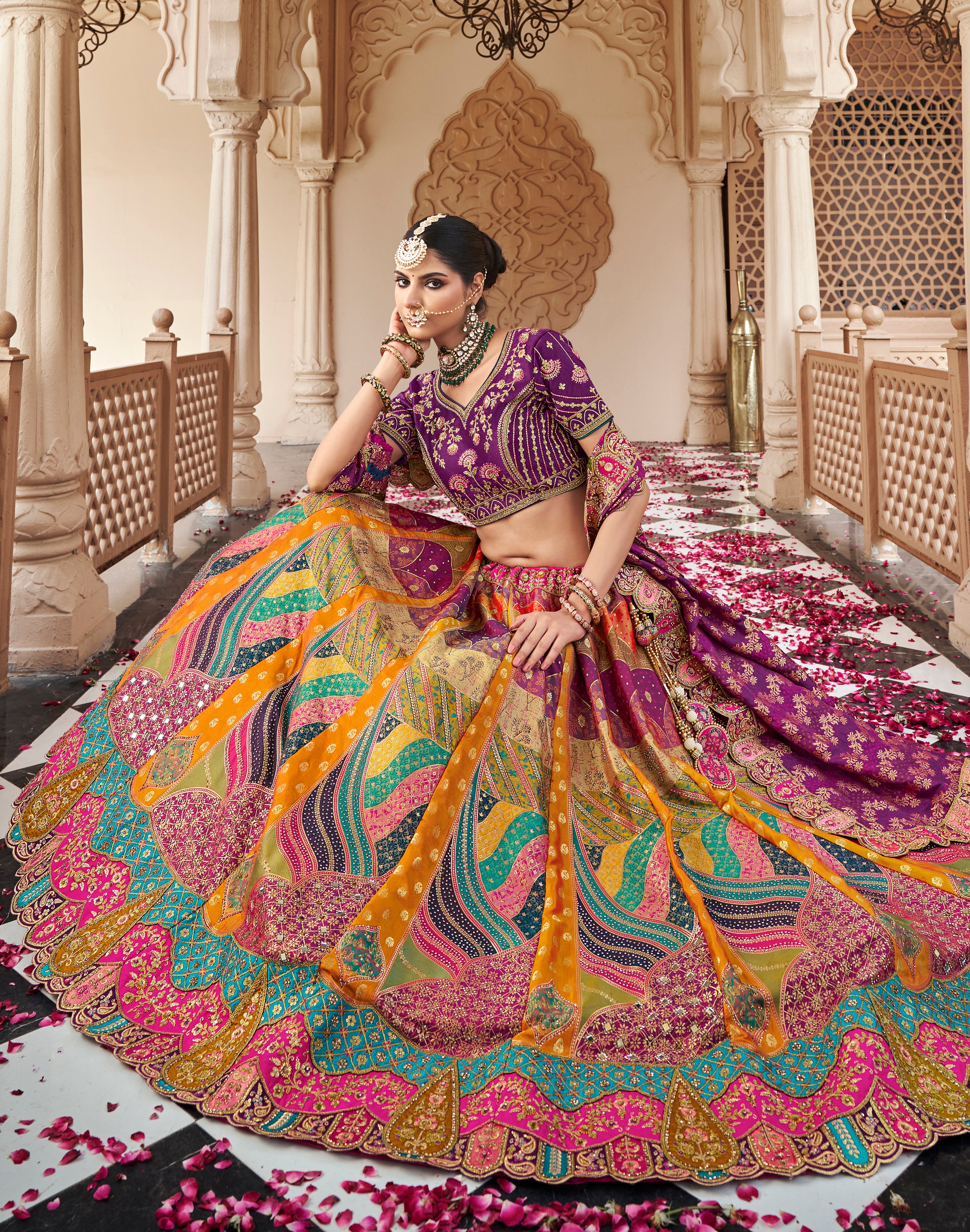 Colour : Lehenga :- Multicolor | Blouse :-Purple | Dupatta:-Purple