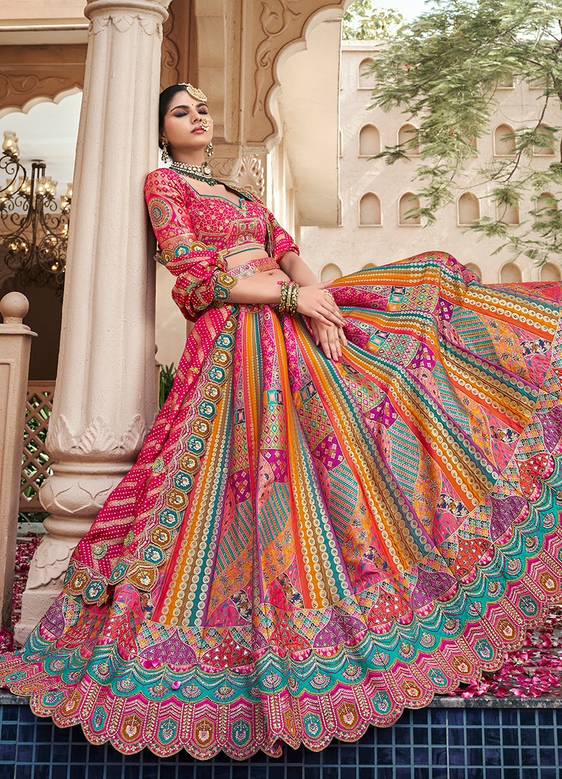 Colour : Lehenga :- Multicolor | Blouse :-Rani Pink| Dupatta:-Rani Pink
