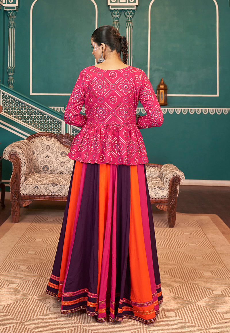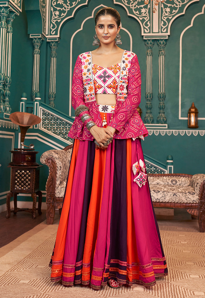 Colour : Lehenga :-Multicolor || Blouse :-Rani Pink || Koti :- Rani Pink
