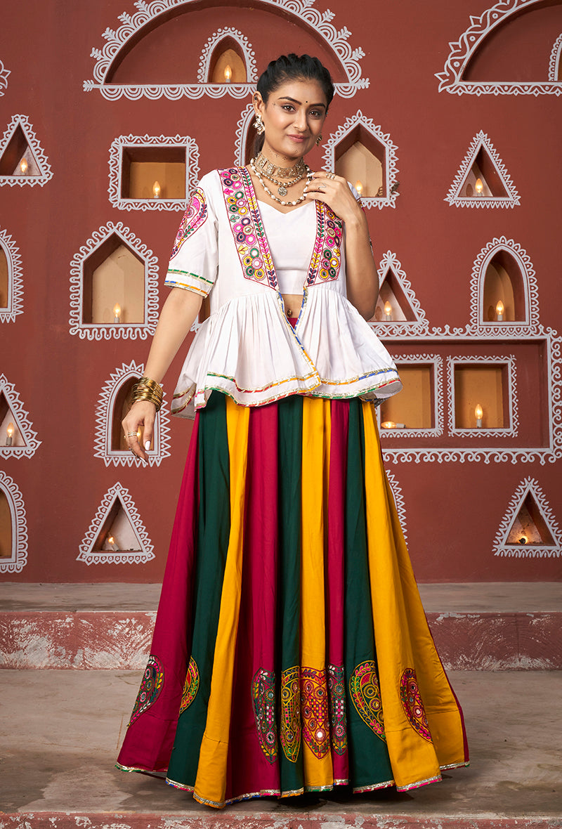 Colour : Lehenga :-Multicolor || Blouse :-White|| Koti :- White