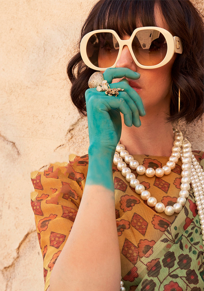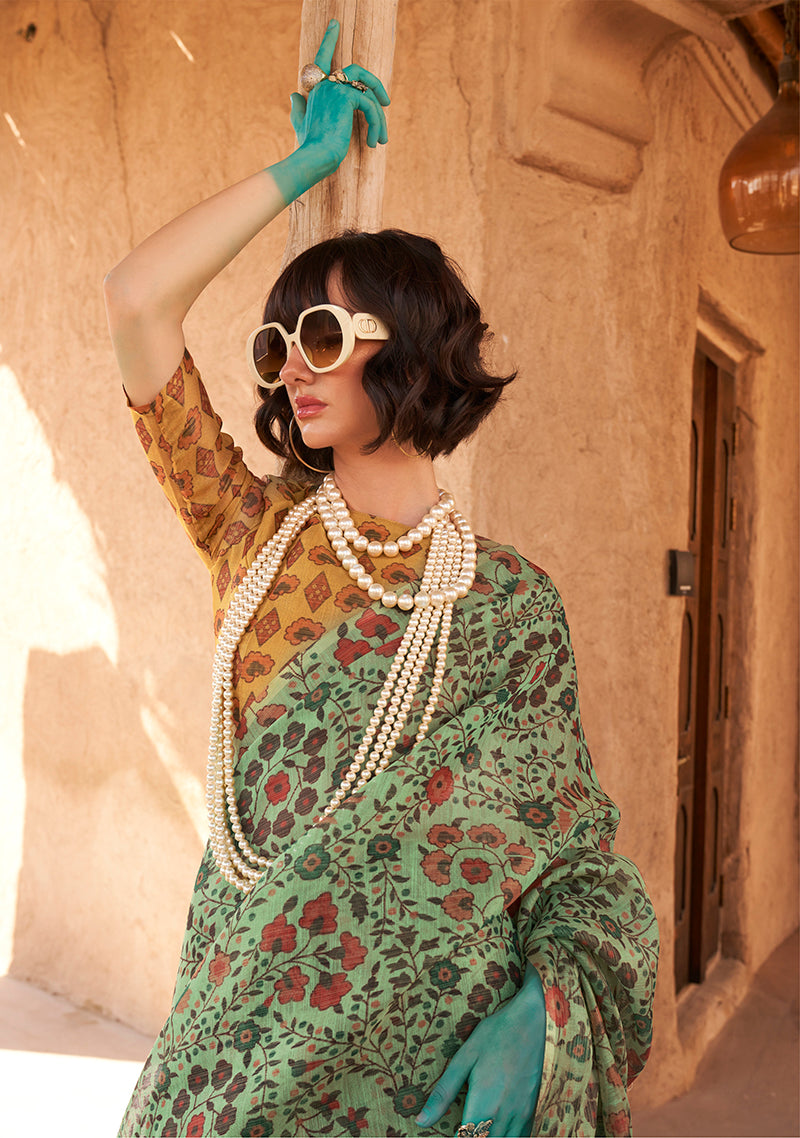 Saree Colour : Sea Green || Blouse Colour : Mustard