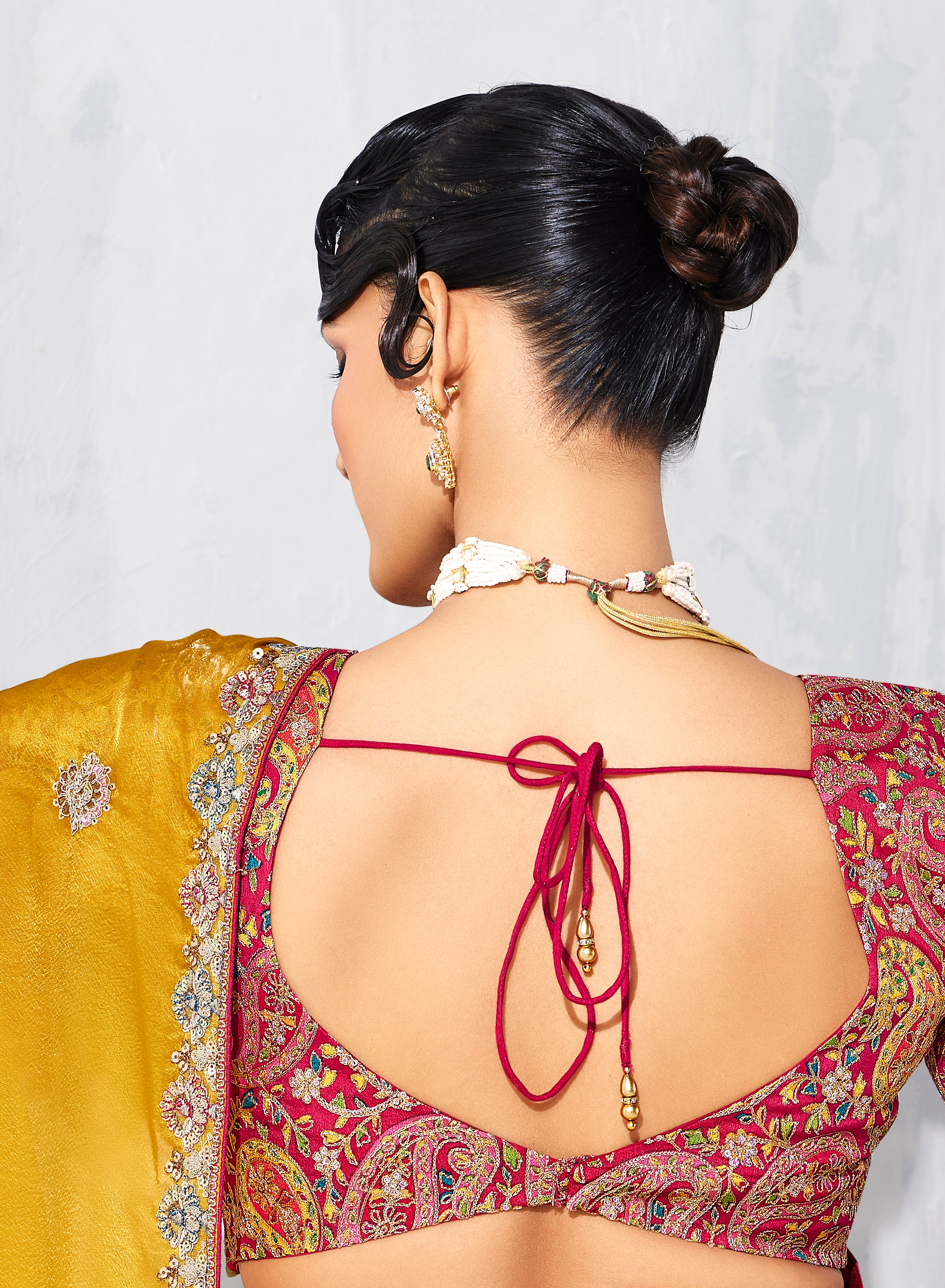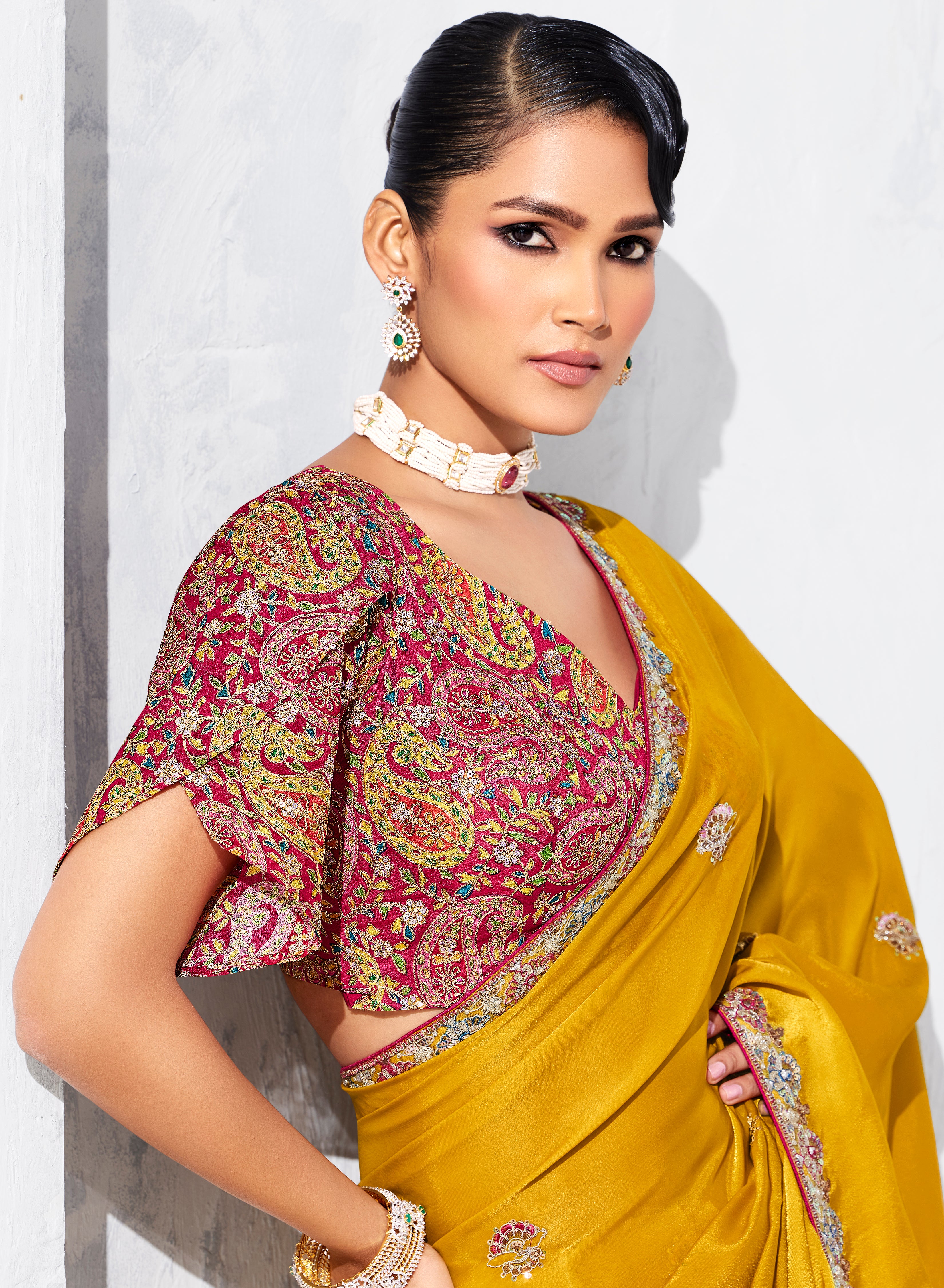 Saree Colour : Mustard | Blouse Colour :- Rani Pink