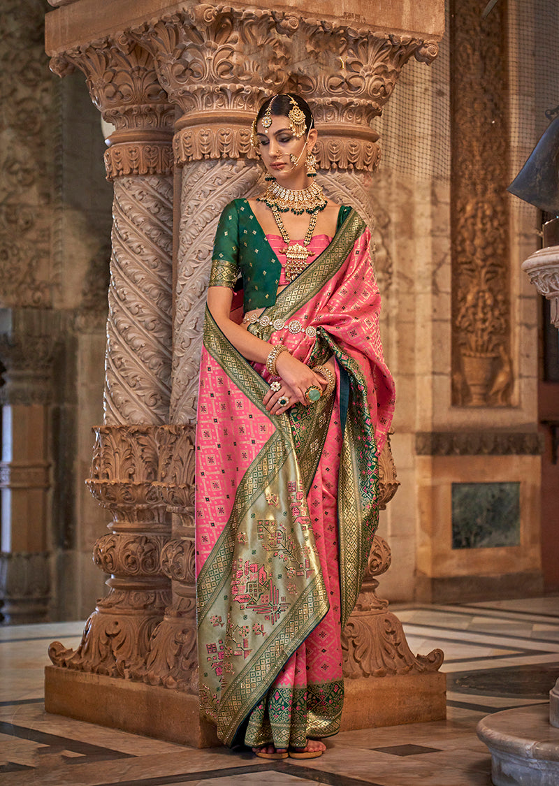Saree Colour : Pink || Blouse Colour : Dark Green