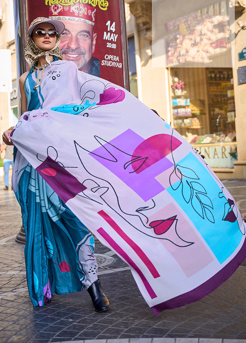 Monjolika Fashion presents a modern take on traditional draping, this printed satin crepe saree blends contemporary designs with feminine flow. Designed for cocktail evenings, destination weddings, or upscale parties.
