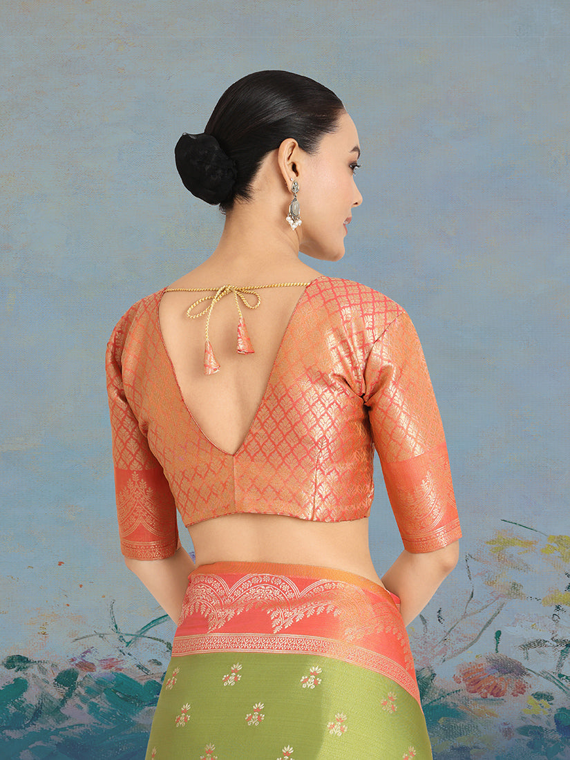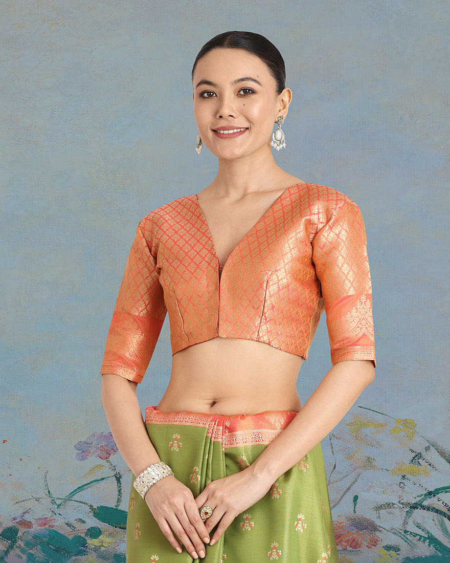 Monjolika Fashion Get going with this majestic and wonderful piece and make your dream attire look richer to your persona. We unfurl our the intricacy and exclusivity of our creations highlighted in this lovely Olive green Banarasi Tissue silk classic saree. The lovely weaving work throughout the attire is awe inspiring. Comes with matching blouse. (Slight variation in color, fabric & work is possible. Model images are only representative.)