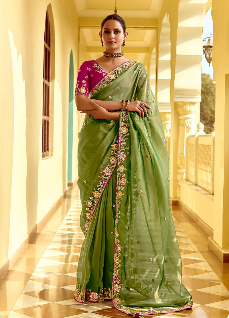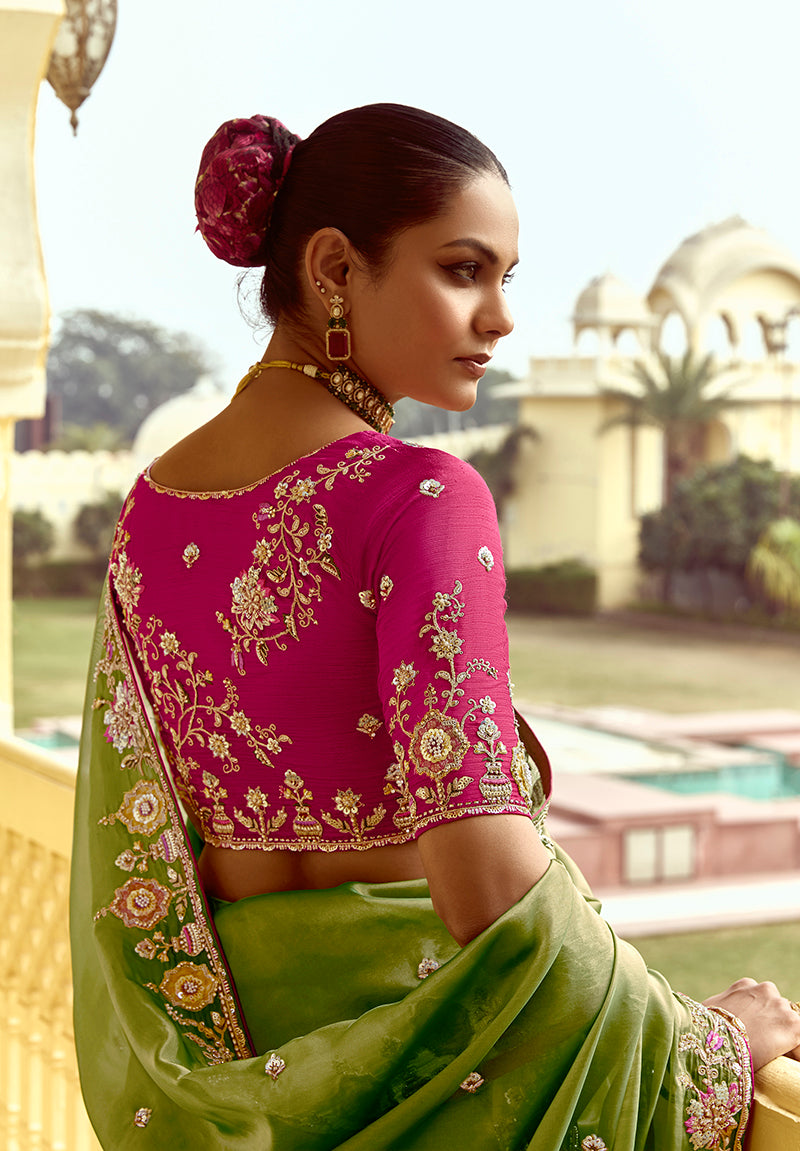 Saree Colour : Olive Green|| Blouse Colour : Rani Pink