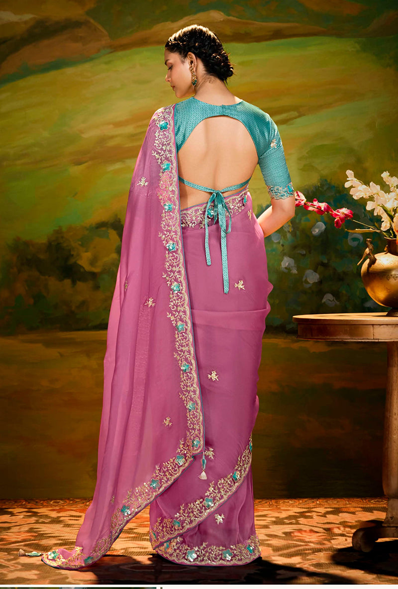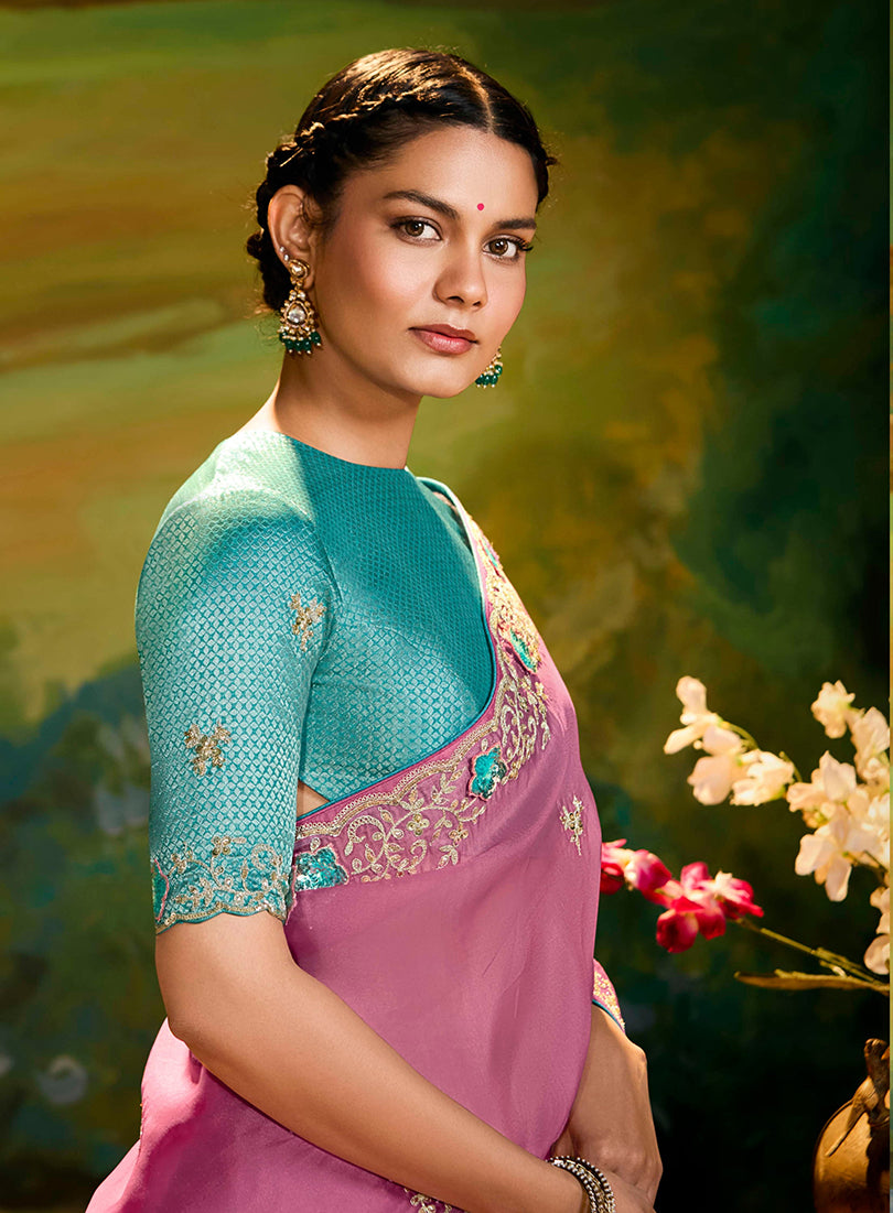 Saree Colour : Onion Pink || Blouse Colour : Turquoise