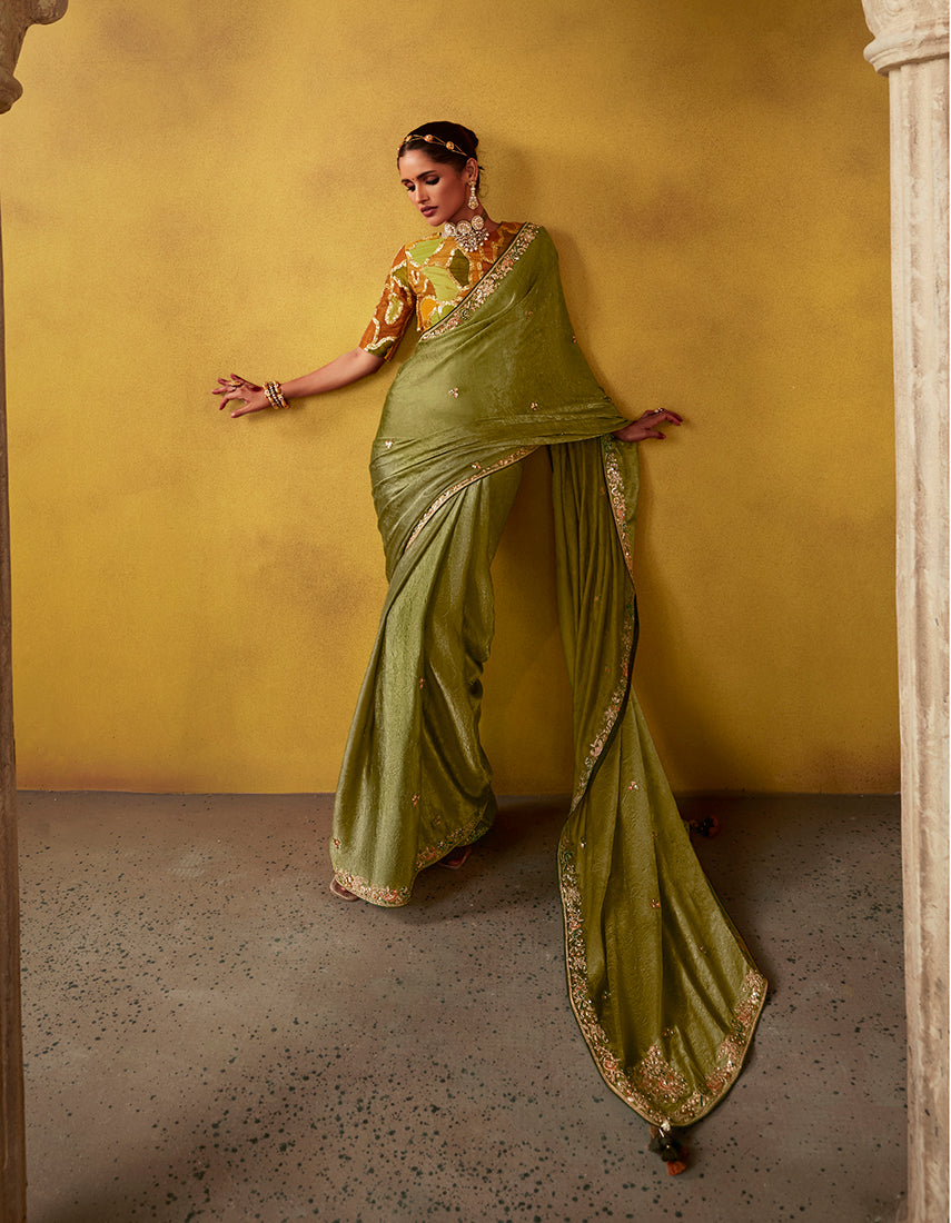 Saree Colour : Olive || Blouse Colour : Mustard