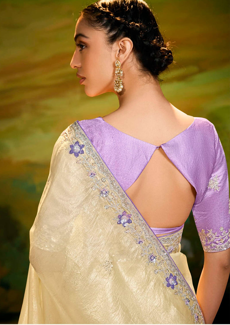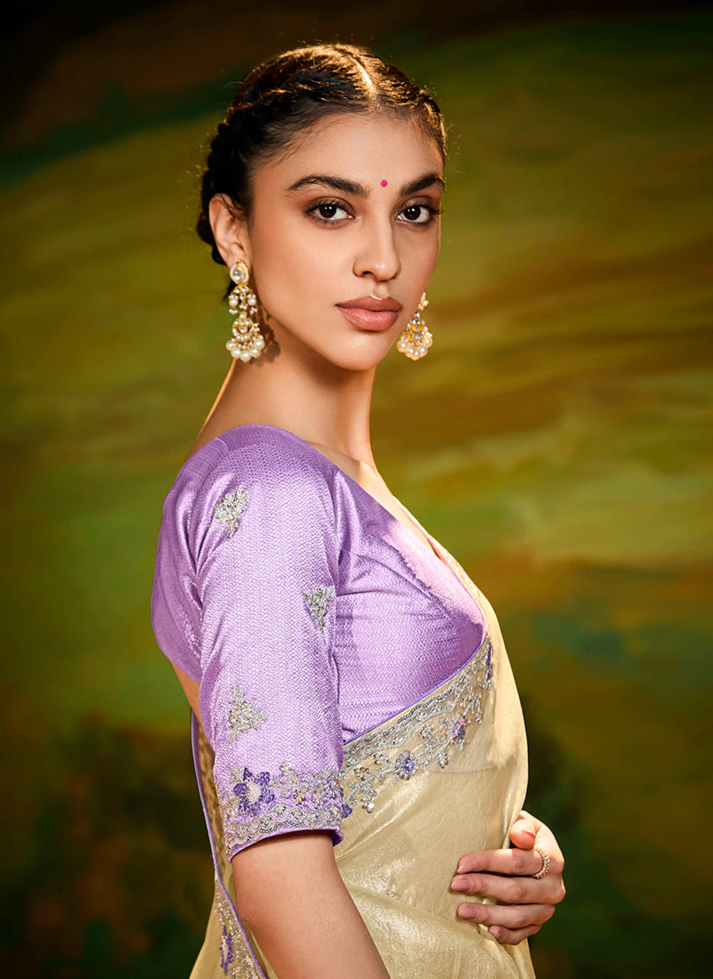 Saree Colour : Light Yellow || Blouse Colour : Lavender