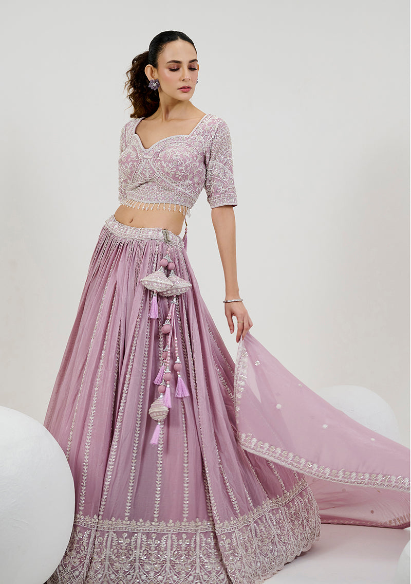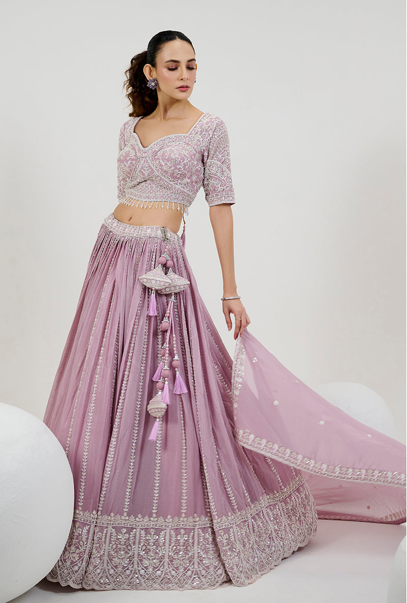 Colour : Lehenga :- Lilac || Blouse :- Lilac || Dupatta :- Lilac