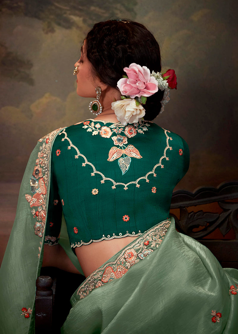 Saree Colour : Seafoam Green || Blouse Colour : Teal