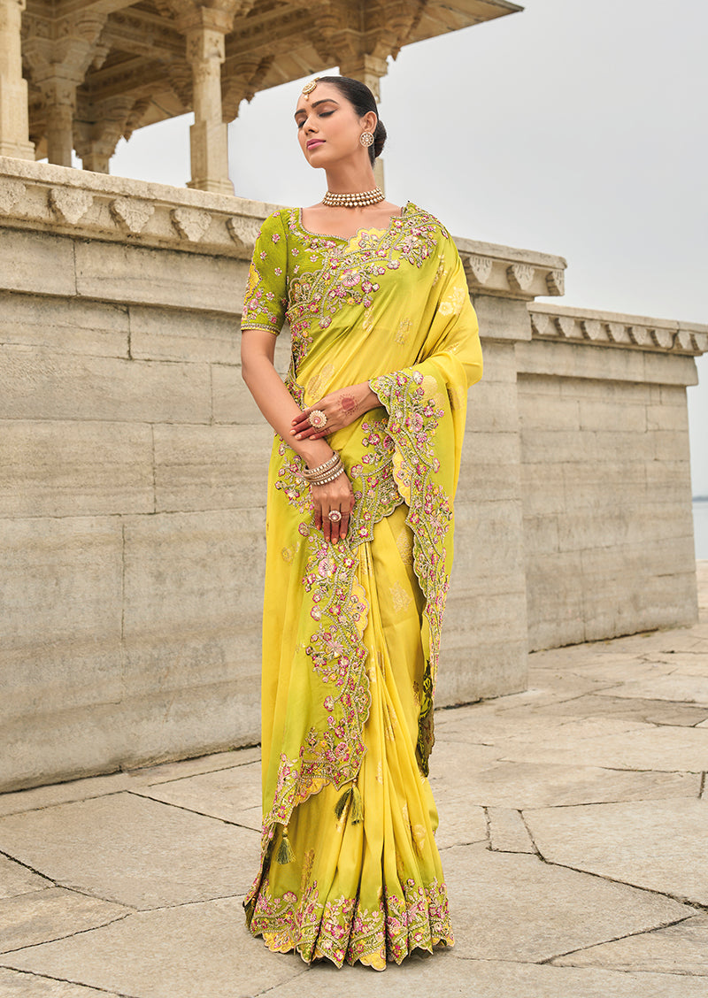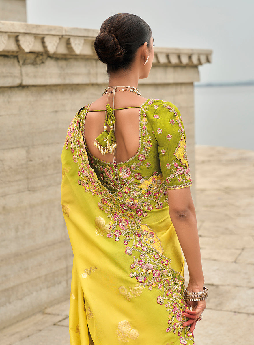 Saree Colour : Lime Yellow|| Blouse Colour :Light olive