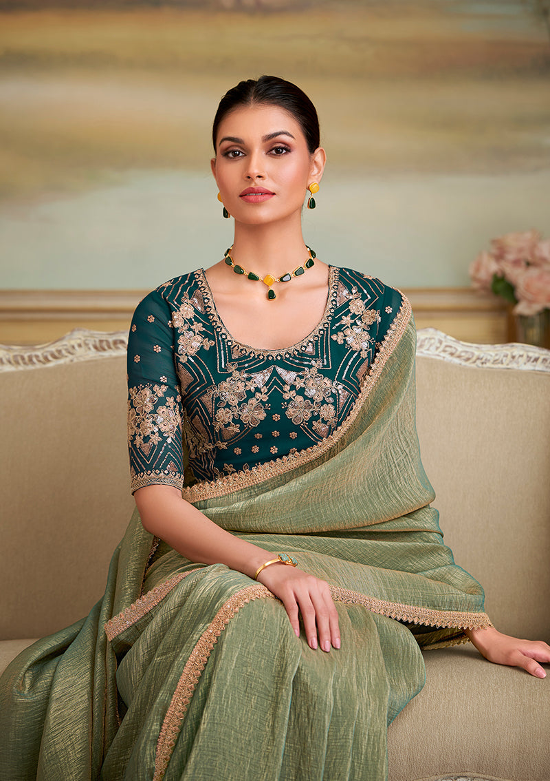 Saree Colour : Pista Green| Blouse Colour : Dark Teal