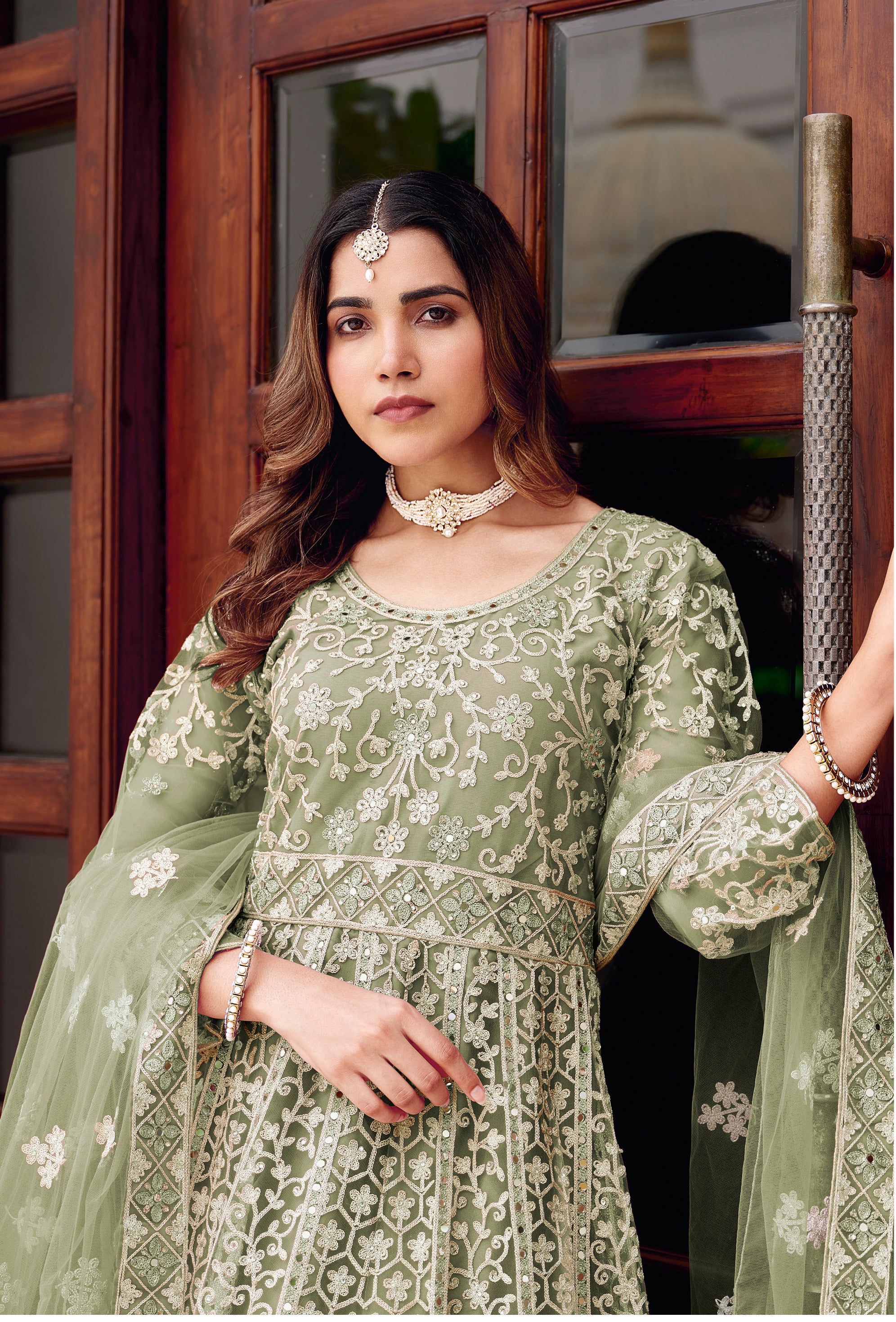 Vogue and pattern will be on the peak of your magnificence as soon as you attire this Light Pista Green net readymade trendy gown . Beautified with embroidered, mirror and stone work all synchronized nicely with the design and style of the attire. (Slight variation in color, fabric & work is possible. Model images are only representative.)