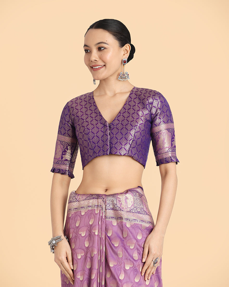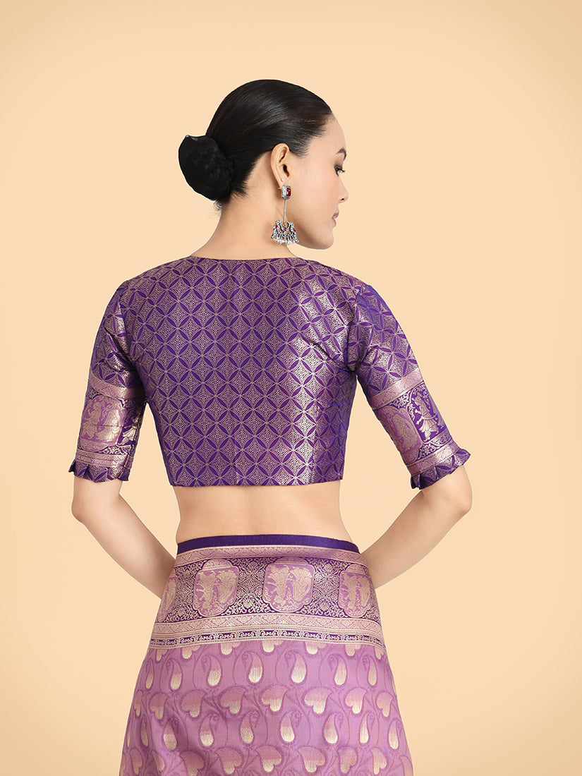 Monjolika Fashion Real attractiveness will come out of your dressing style with this Purple Color Banarasi silk traditional saree. The ethnic weaving work to your apparel adds a sign of magnificence statement with a look. Comes with matching blouse. (Slight variation in color, fabric & work is possible. Model images are only representative.)