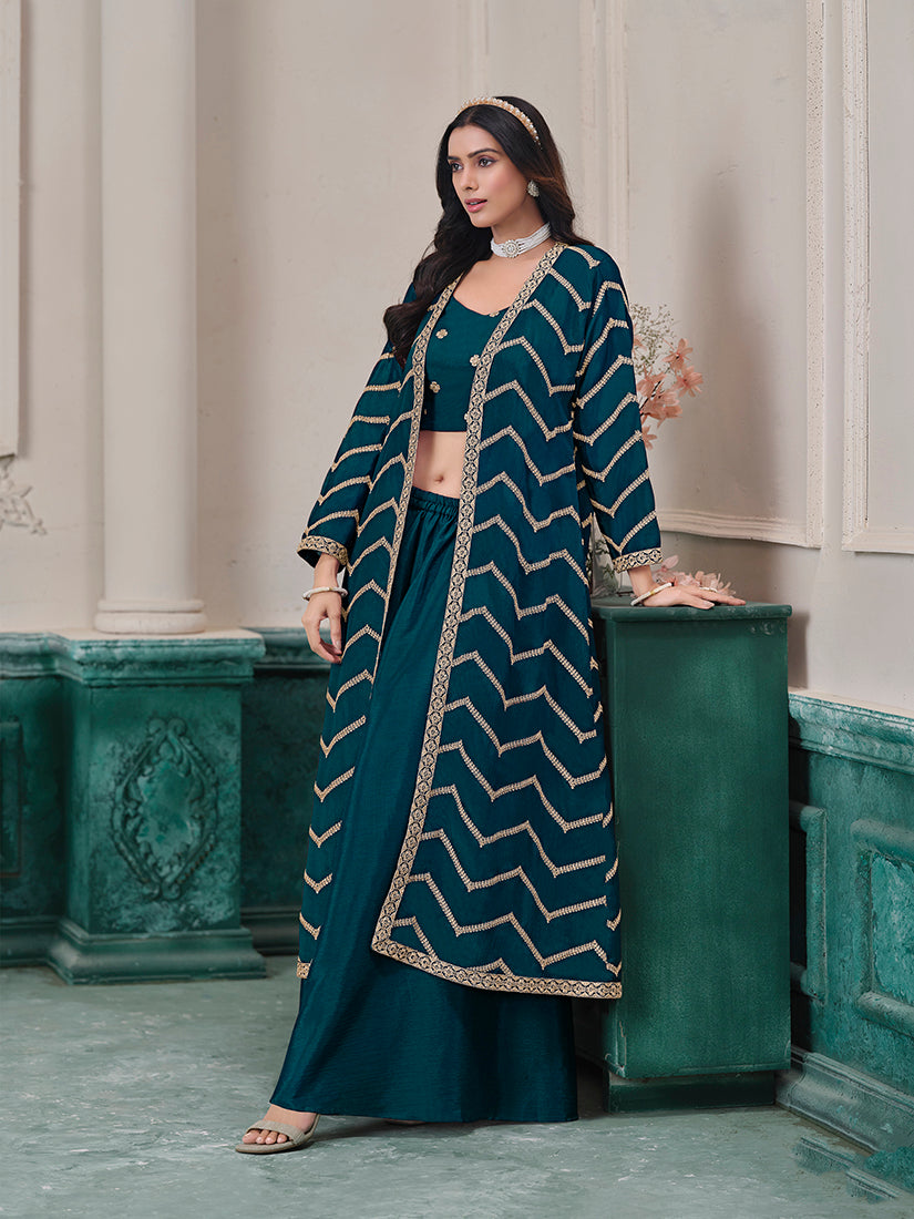 Colour : Top :-Teal || Bottom :-Teal || Shrug:- Teal