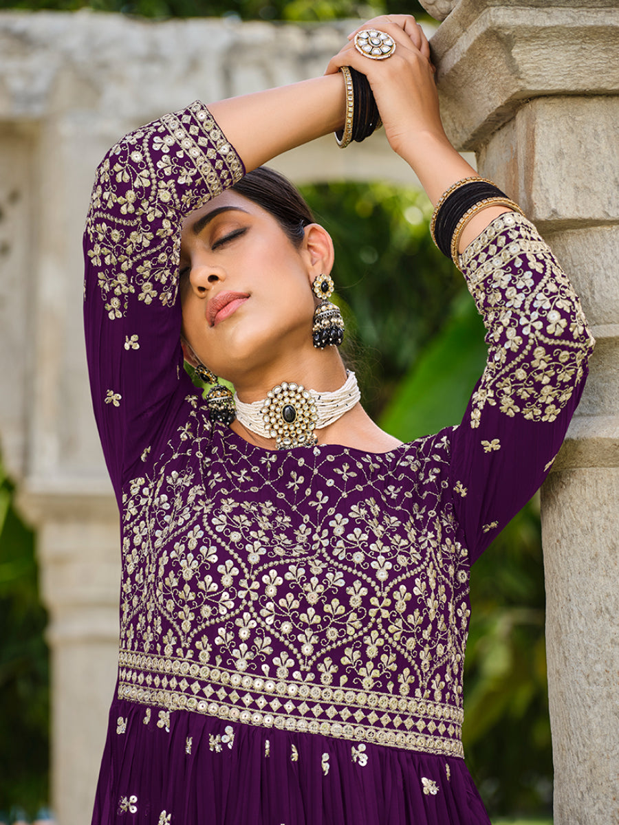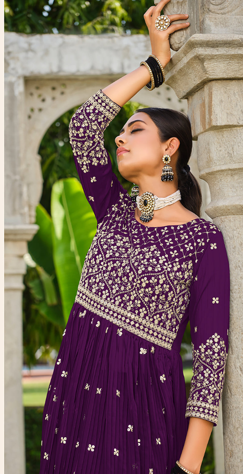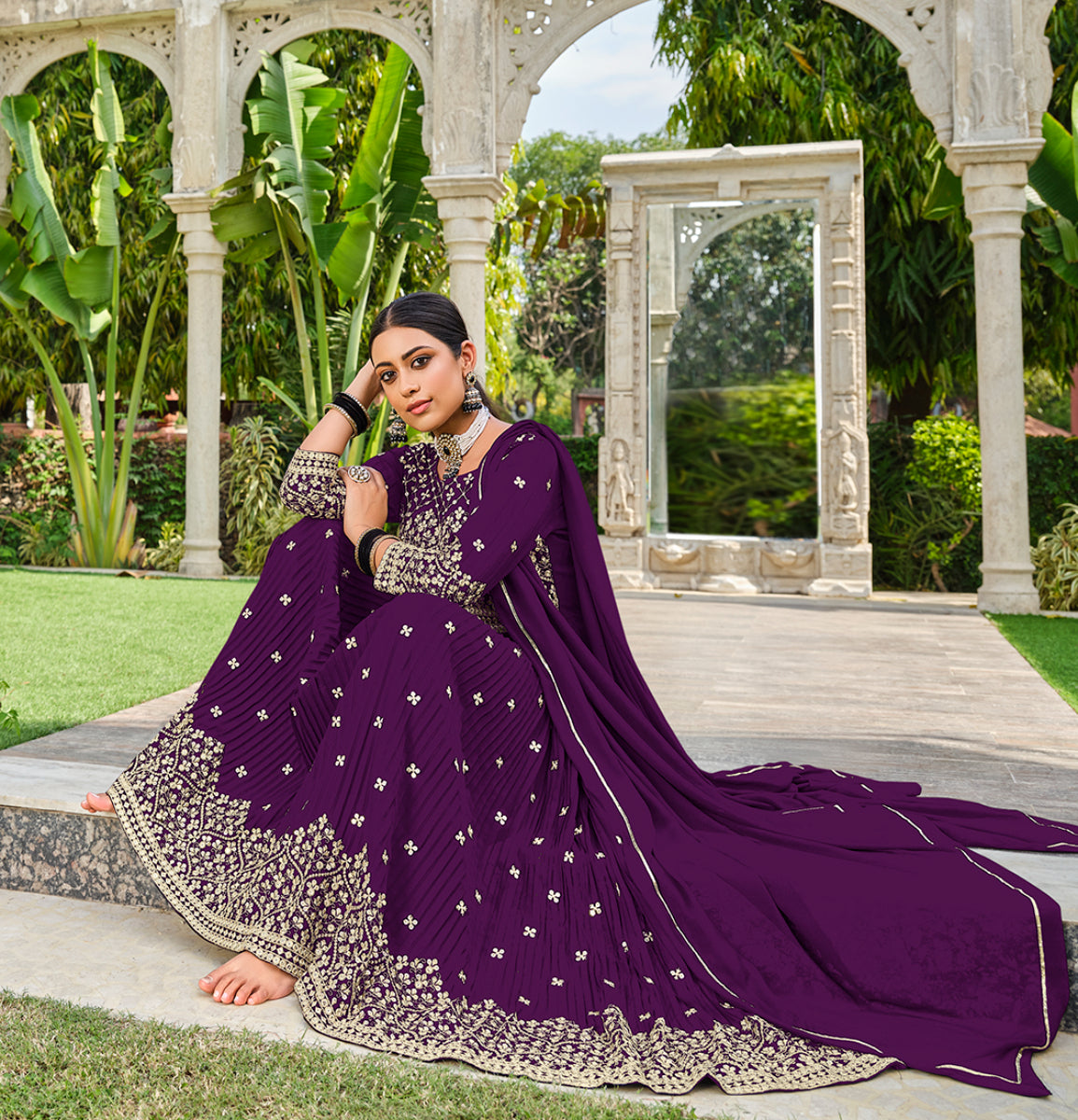 Monjolika Fashion Presents Appear stunningly engaging in this Purple Color Georgette salwar kameez. The appealing embroidered work a significant element of this attire. Comes with matching Santoon bottom and Georgette dupatta.