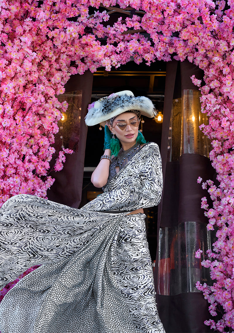 Saree Colour: Black & White || Blouse Colour: Black