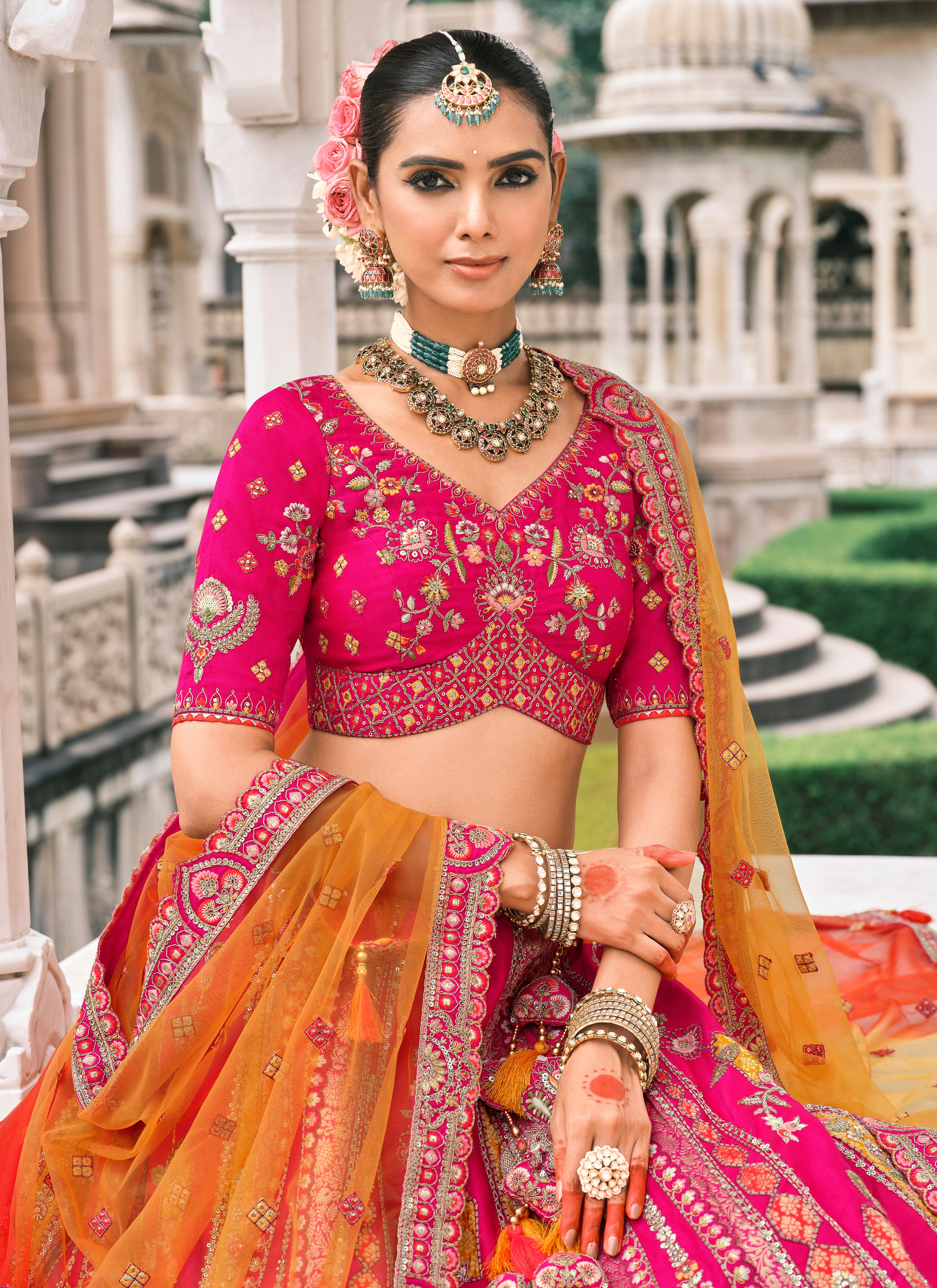 Product Code : 59779Colour : Lehenga :- Rani Pink| Blouse :-Rani Pink | Dupatta:- Multicolor