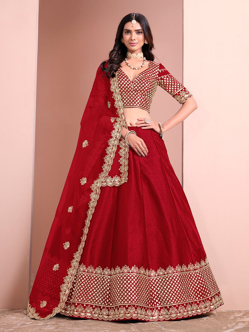Give in to the exotic confluence of today and tomorrow in this beautiful attire. This wine Art silk trendy a line lehenga choli is including the appealing glamorous displaying the feel of cute and graceful. This stunning attire is showing some remarkable embroidery done with lace work. Comes with matching choli and dupatta. (Slight variation in color, fabric & work is possible. Model images are only representative.)