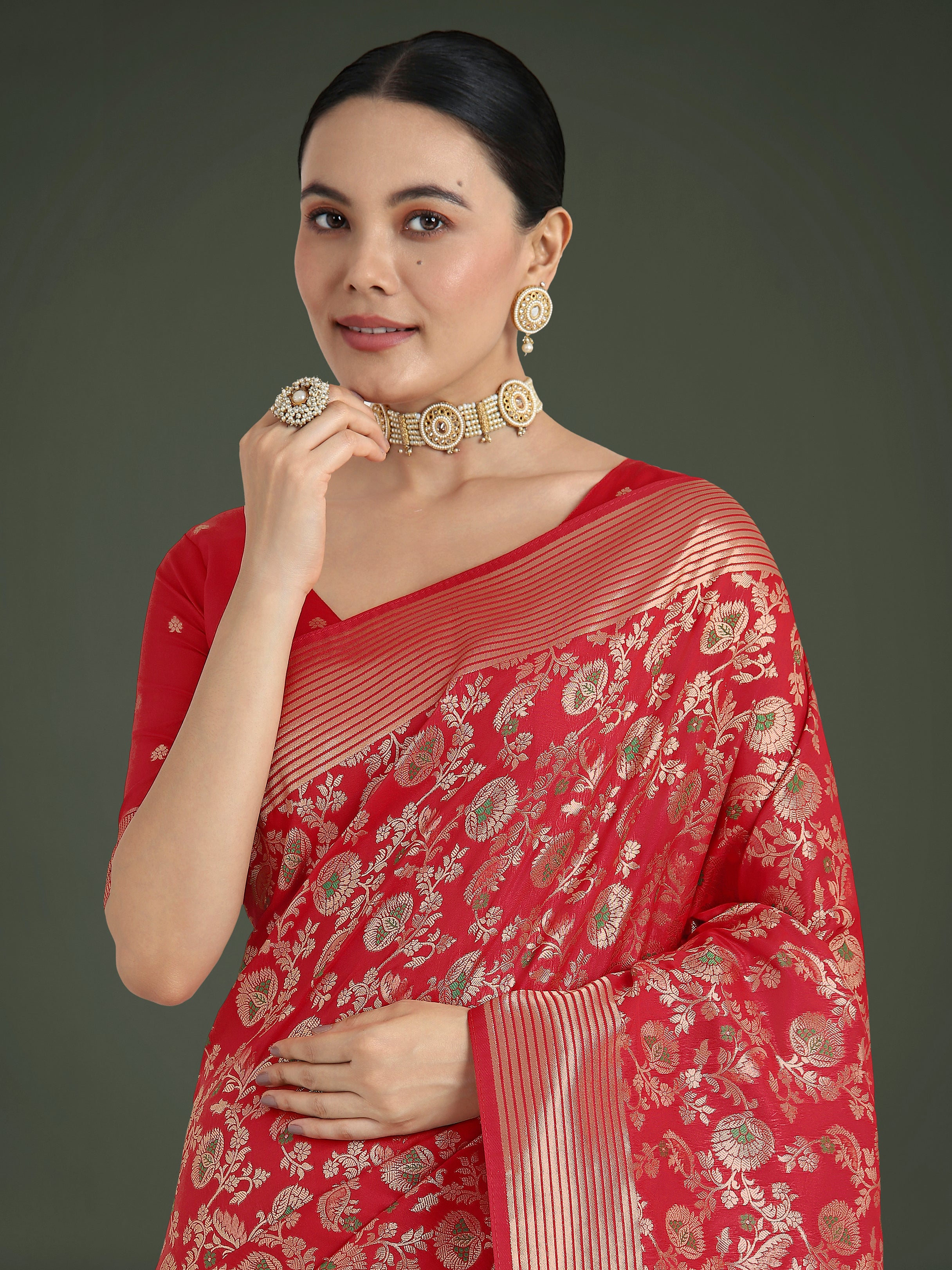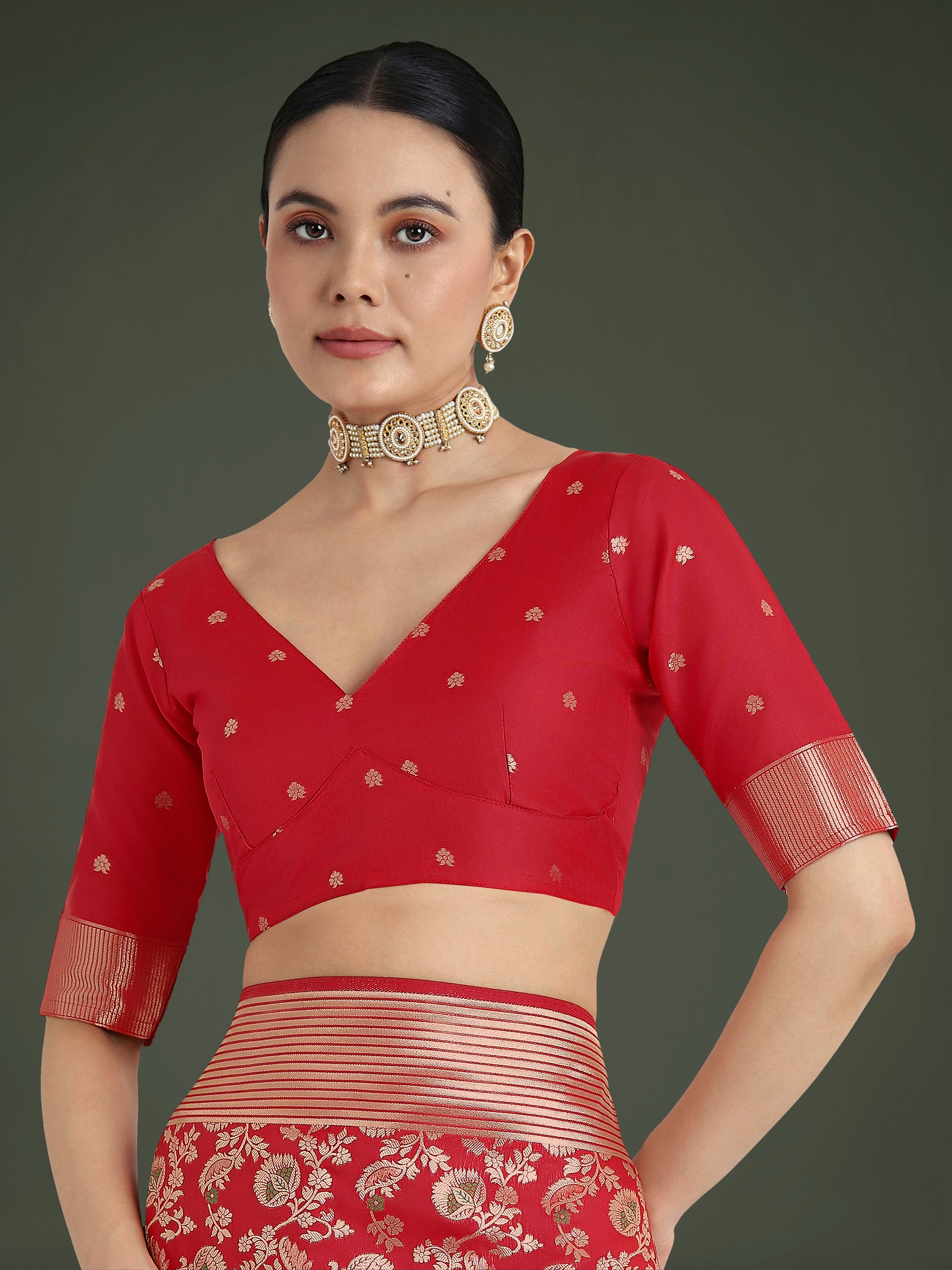 Saree Colour : Red|| Blouse Colour : Red