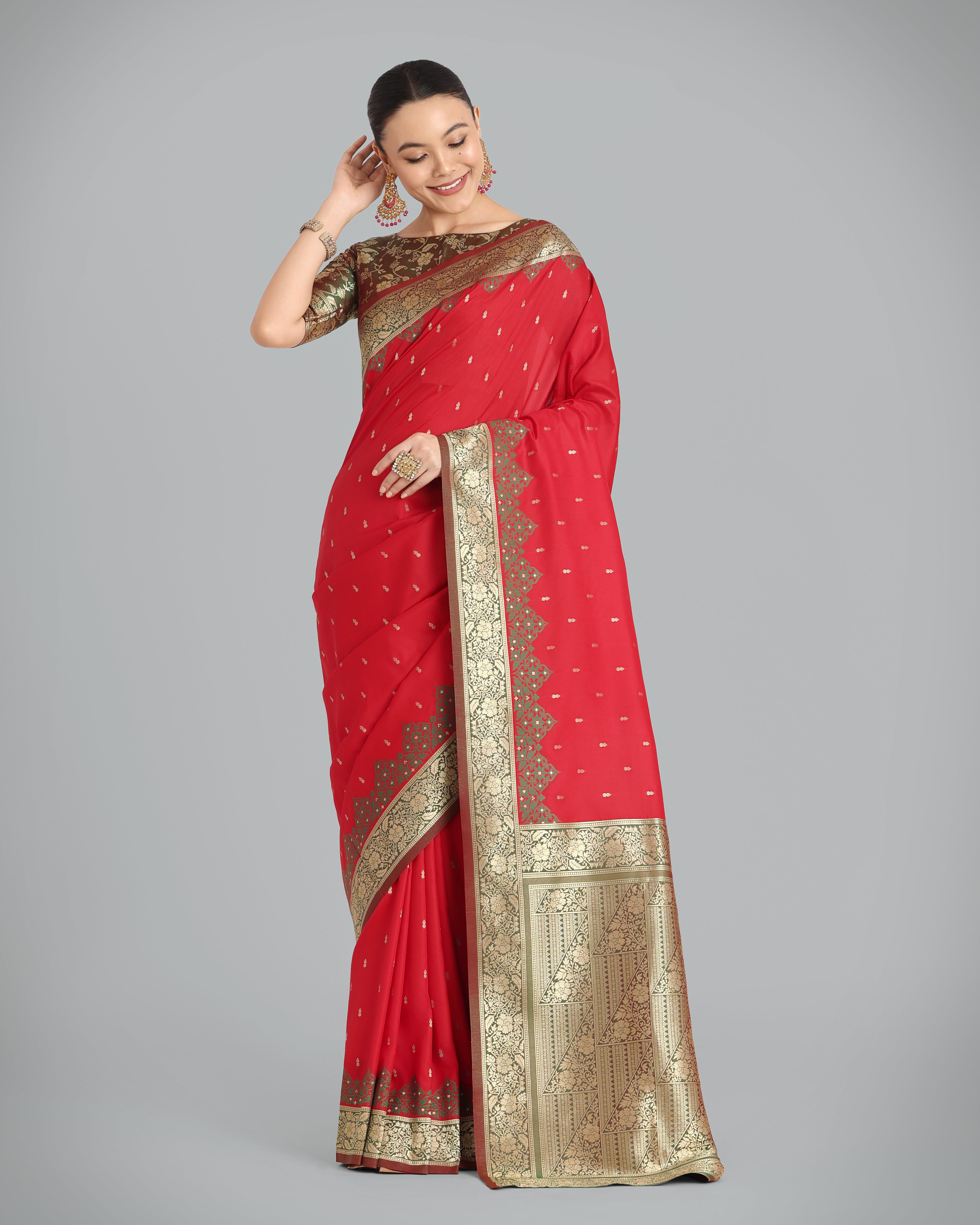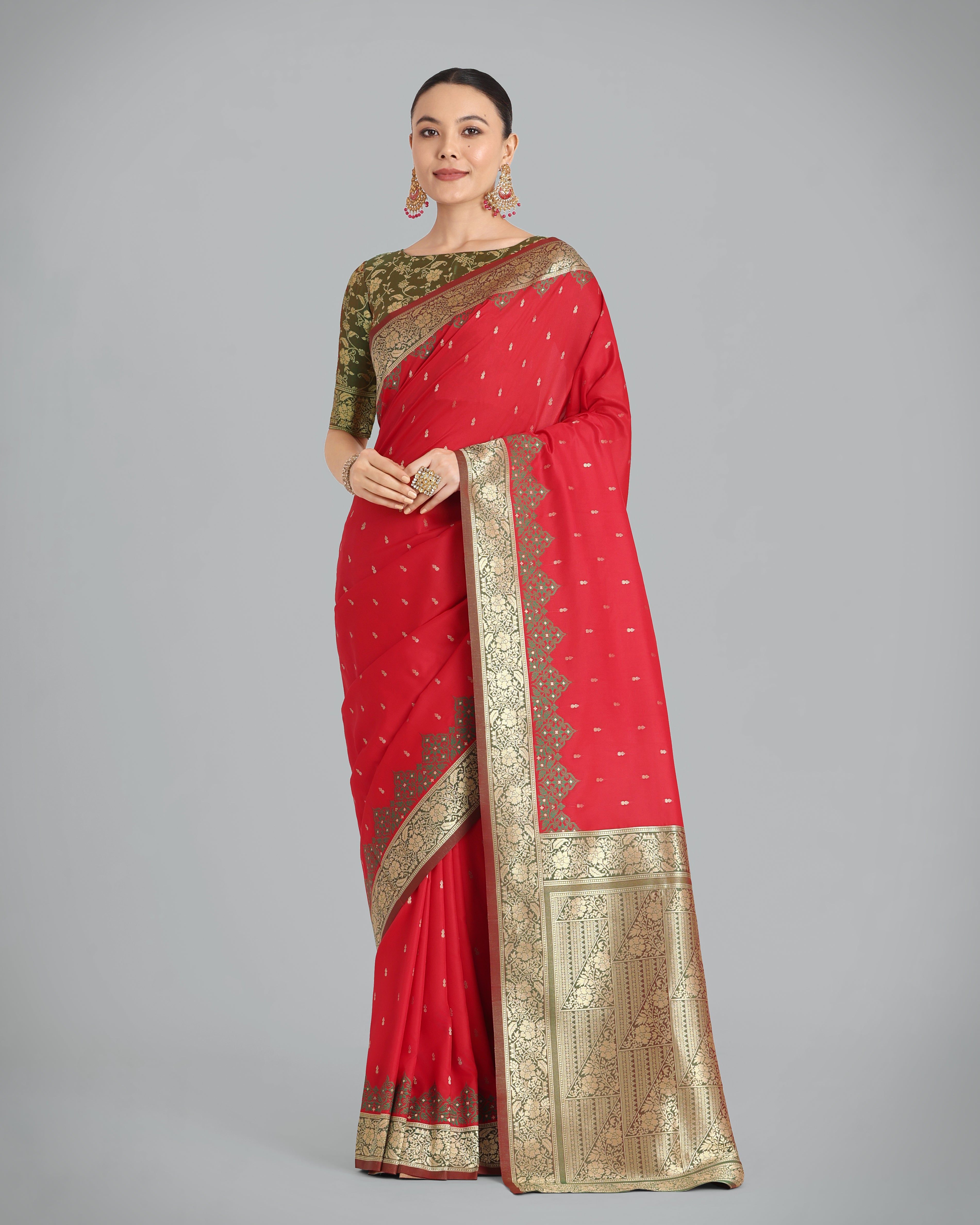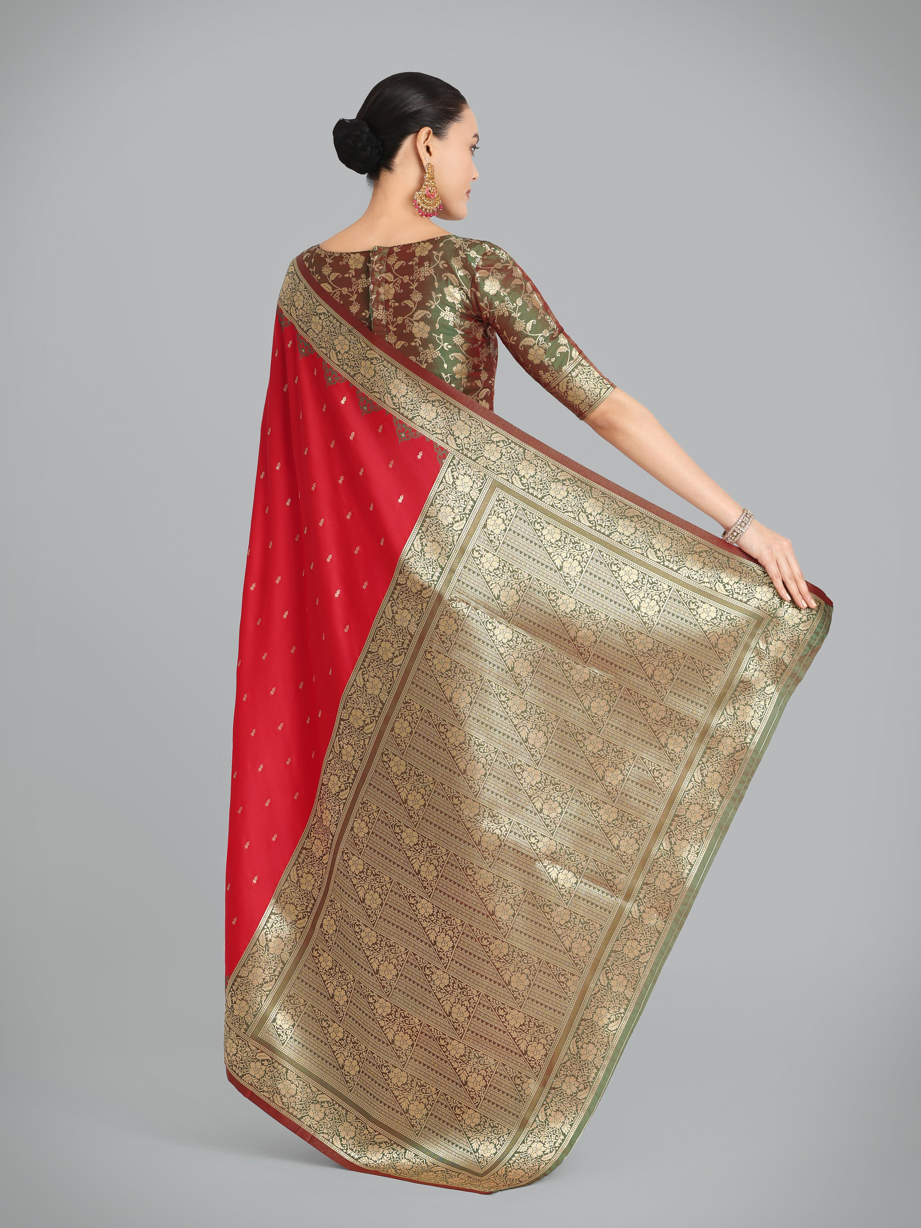 Monjolika Fashion Presents Embrace the perfect blend of tradition and style with this parrot green banarasi soft silk saree. Featuring an intricate butti design across the body and rich zari woven borders, this saree is a must-have for your ethnic wardrobe. Its luxurious texture and vibrant hues make it an ideal choice for festive gatherings and celebrations. Pair it with statement jewelry to enhance its timeless beauty and make a lasting impression.