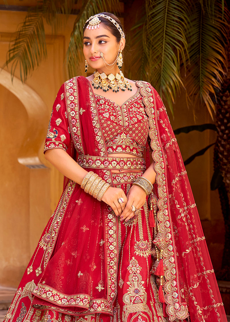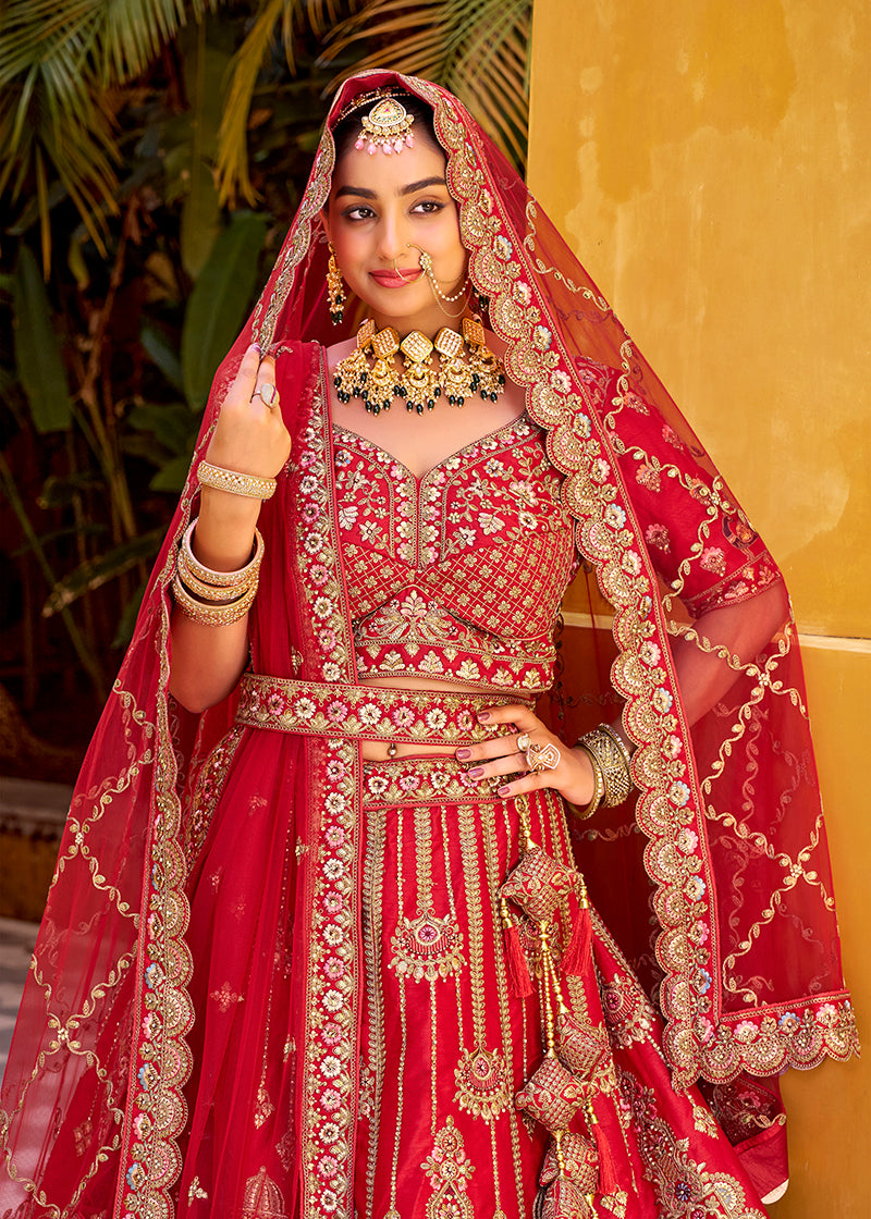 Colour : Lehenga :- Red | Blouse :-Red | Dupatta:- Red