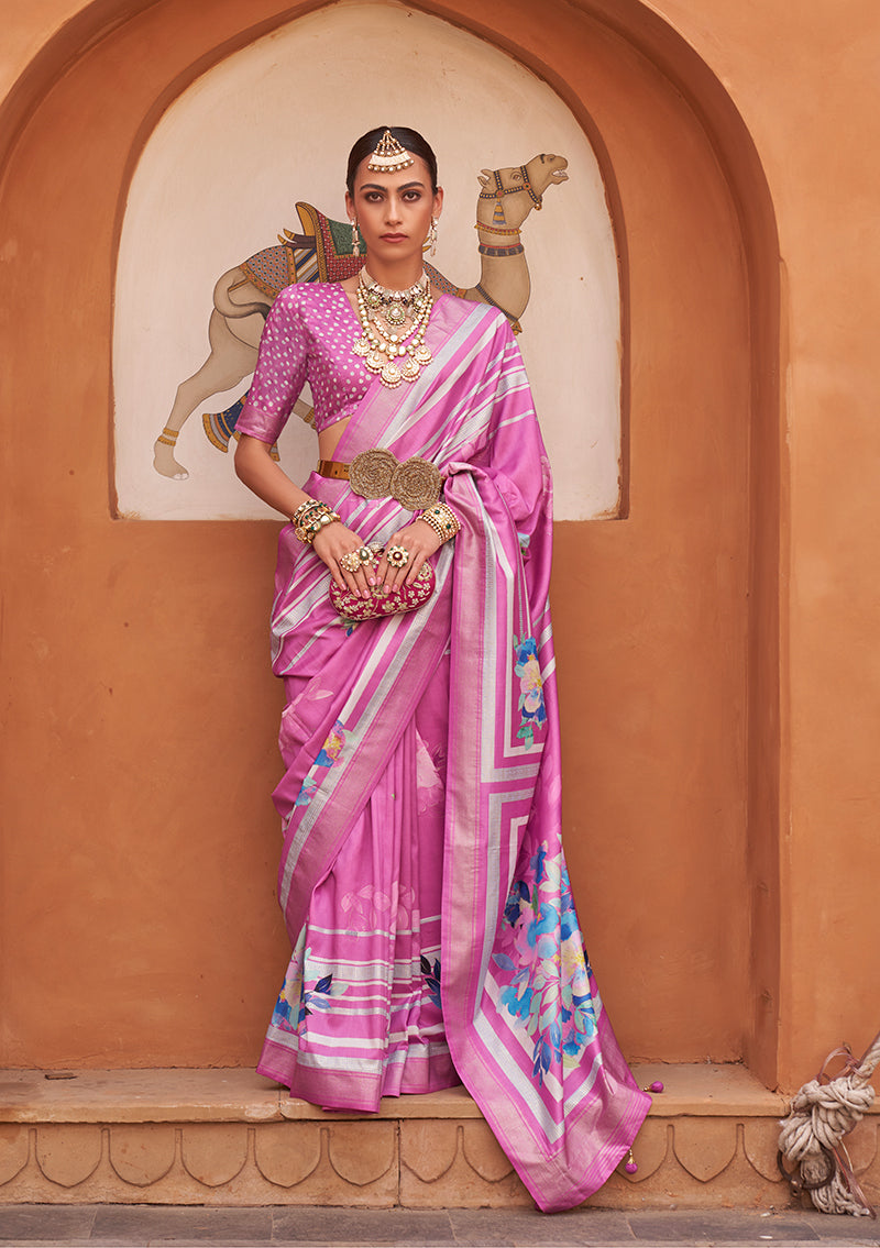 Experience Timeless Elegance With Our Silk Blend Saree. This Exquisite Saree Combines The Luxurious Allure Of Silk With Delicate Floral Prints, Creating A Masterpiece That Effortlessly Blends Tradition And Contemporary Style. This Saree Exudes Grace And Sophistication, Making You The Center Of Attention Wherever You Go.