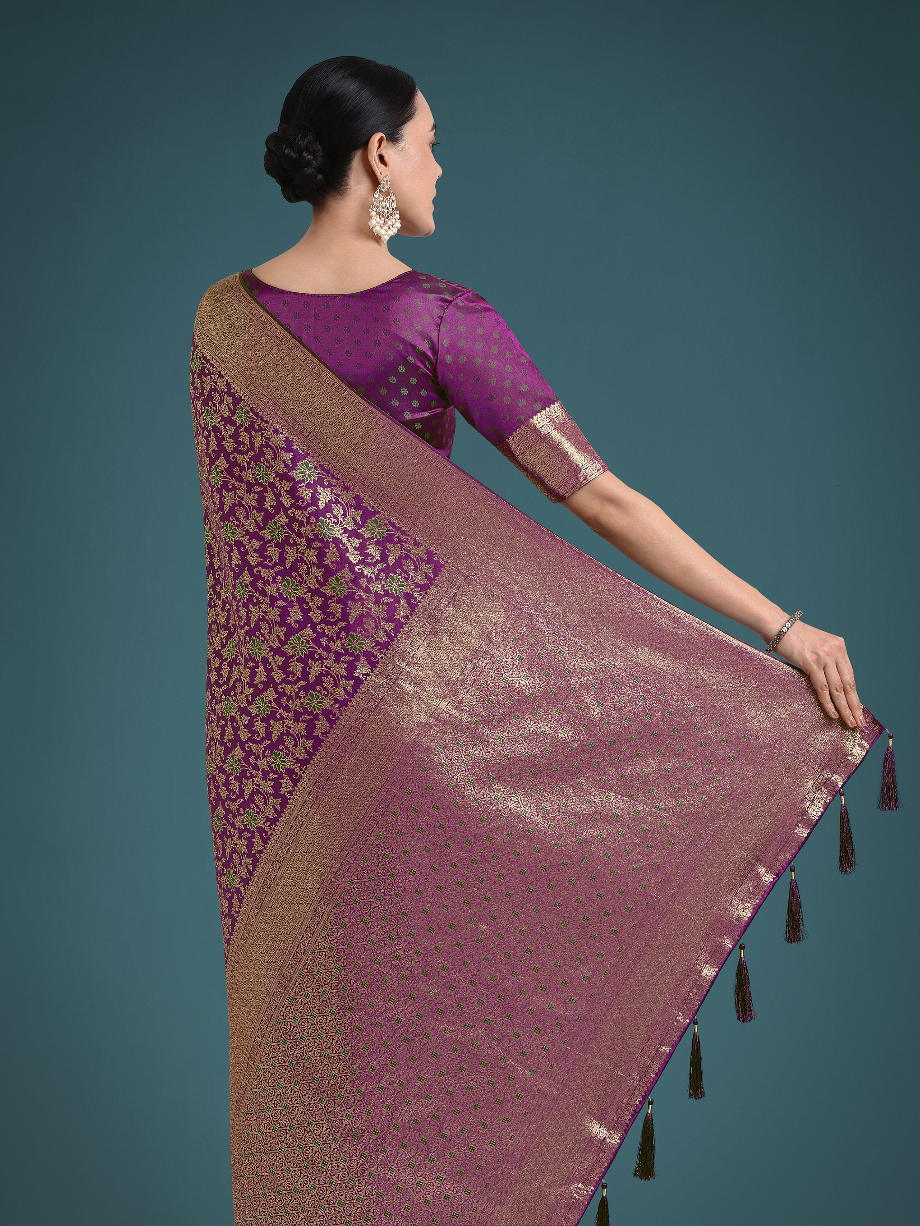 Saree Work : Zari Weaving (Woven) Meenakari zari weaving work || Blouse: Weaving (Woven)