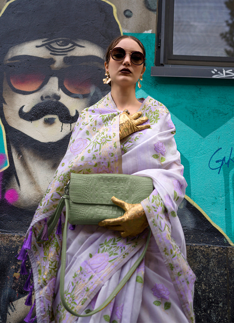 Monjolika Fashion presents crafted with care and woven with legacy, this Handloom Silk Weaving Saree is the perfect choice for your festive wardrobe. Its detailed floral motifs, smooth finish, and traditional pallu make it suitable for auspicious occasions like Durga Puja, Pongal, and Diwali.