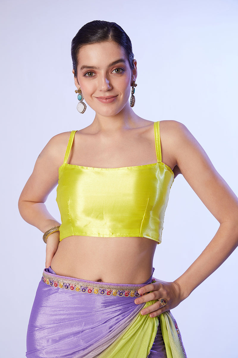 Saree Colour : Green, Lavender || Blouse Colour : Lemon Yellow