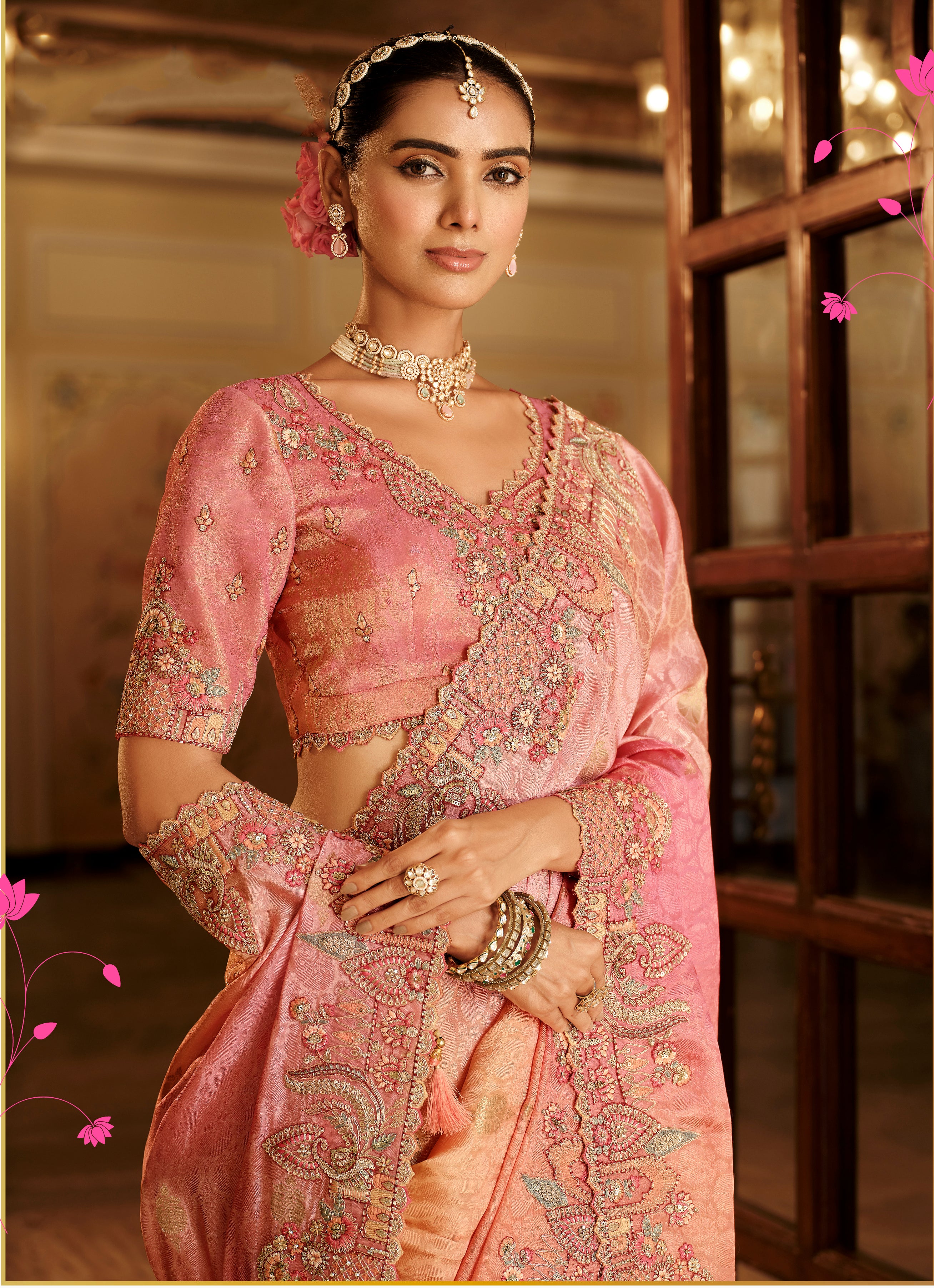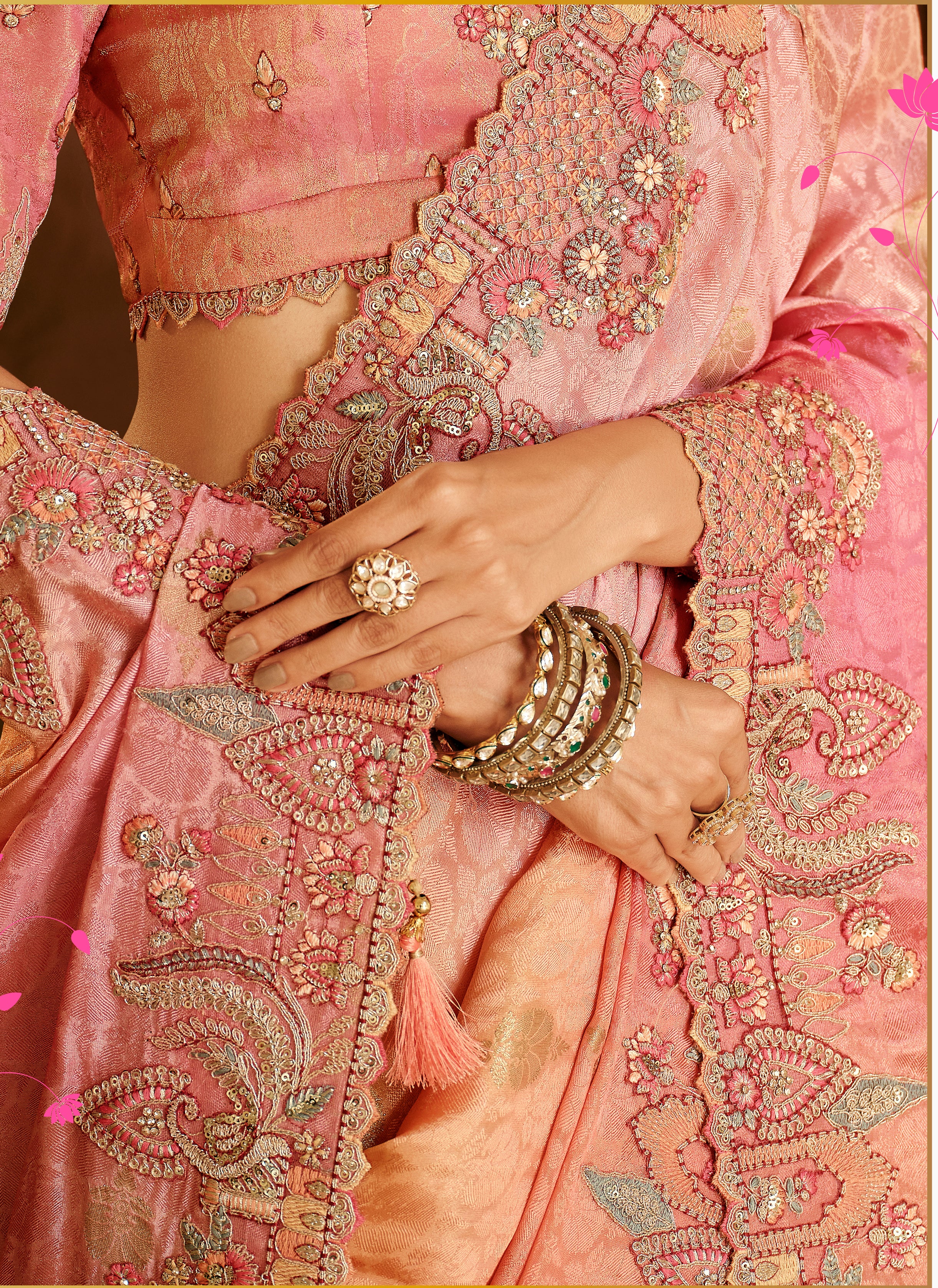 Saree Colour : Peach & Rose Pink || Blouse Colour :-Rose Pink