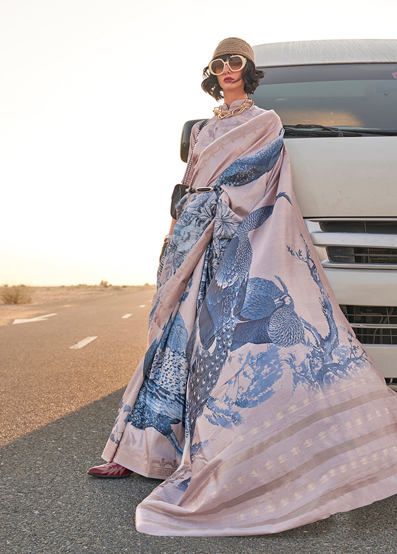 Saree Work : Printed || Blouse: Zari Woven Border