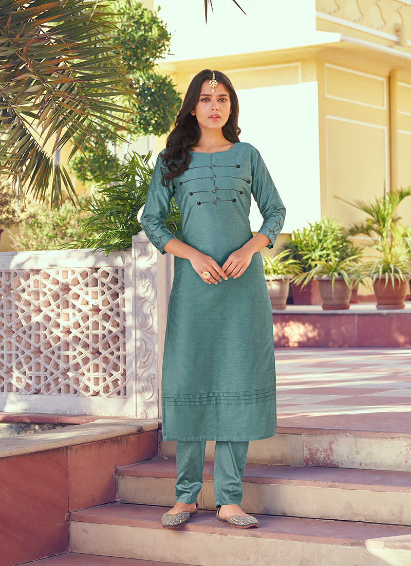 Make the heads flip when you dress up with this slate grey Color Roman Silk straight Kurti Pant. The embroidered, fancy thread and zari work on attire personifies the complete appearance. Comes with matching Roman Silk bottom.