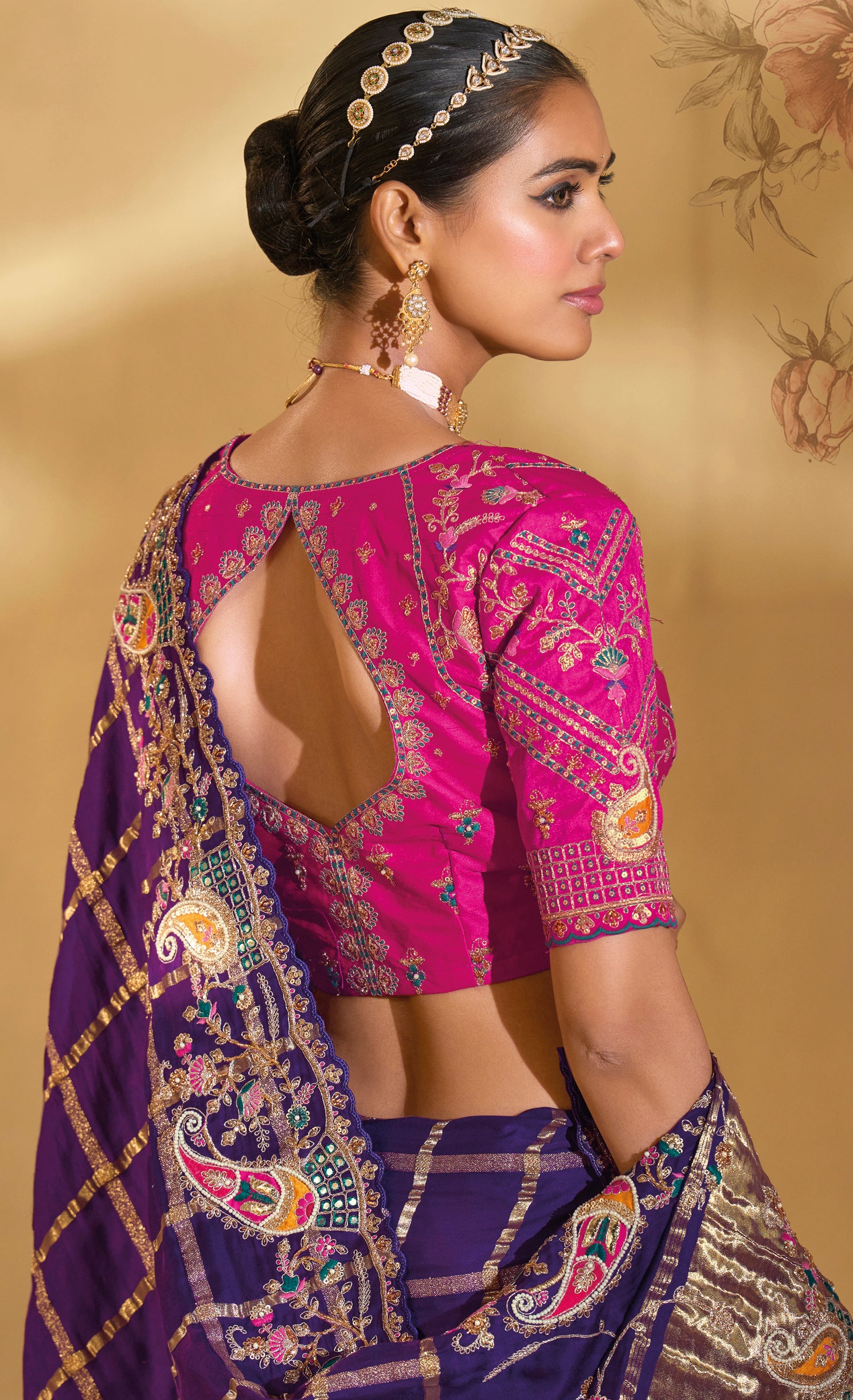 Saree Colour : Purple || Blouse Colour :- Rani Pink